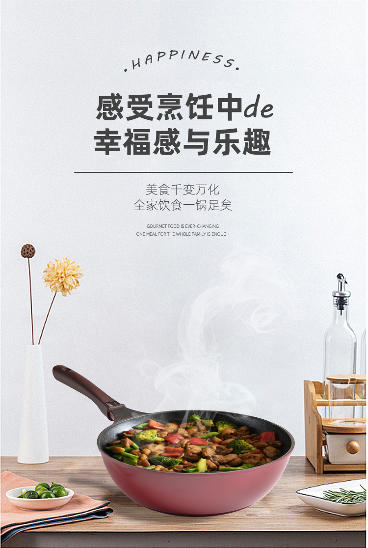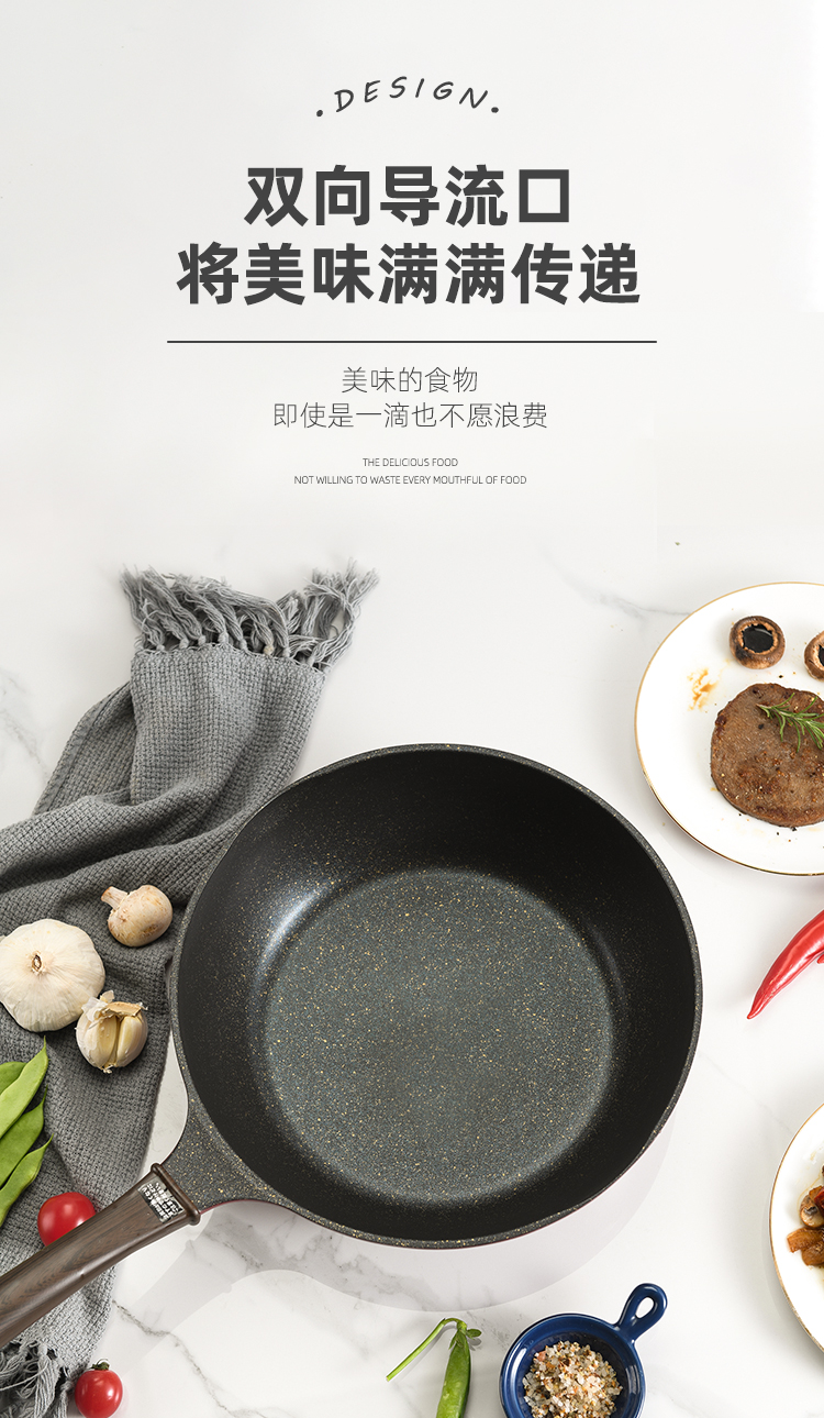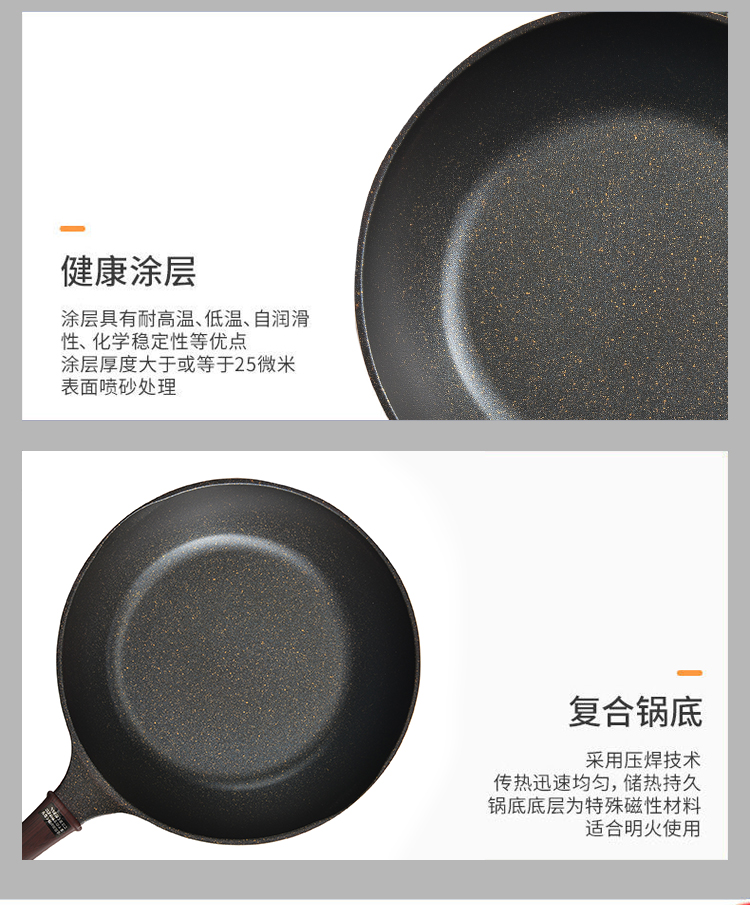 这款MrMax平底炒锅,是家庭最实用的锅具之一,煎炸炖煮炒全能,采用木制手柄和复合压焊锅底,导热快且不烫手,使用简单,内部4层涂料,还添加了钻石表面涂料+大理石涂料,坚固耐用,少油不沾,用金属勺也不易掉涂层。
