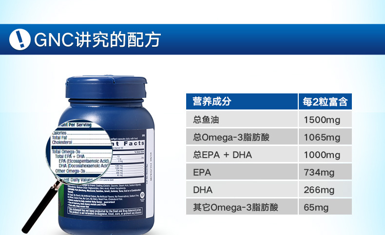 天猫hihealth海外专营店139元,可领50元优惠券,实付89元到手。这款GNC 健安喜 三倍效力高浓缩深海鱼油迷你胶囊120粒 ,采用野生深海鱼提取的复方制剂,拥有独特的柠檬味,毫无鱼腥味; 每2粒富含1500mg总鱼油,1065mg总Omega-3脂肪酸、1000mg总EPA+DHA(734mgEPA+266DHA)及65mg其他Omega-3脂肪酸,并且添加维生素E,防止鱼油氧化,具有可以降低血脂、胆固醇和轻微降血压、预防心血管疾病、增强记忆力、改善大脑功能的作用,并能改善糖尿病症状,减少胰岛素的不耐受症。适合十八岁以上成人、三高人士及有三高家族史者、白领高压人士、超重及肥胖人士、长期缺乏体力活动者服用。