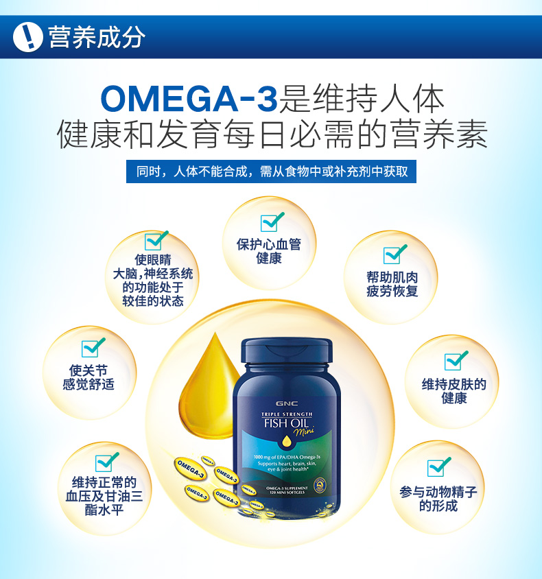 鱼油中富含人体必需的ω-3不饱和脂肪酸,世界各国尤其是发达国家流行服用深海鱼油来补充EPA和DHA。