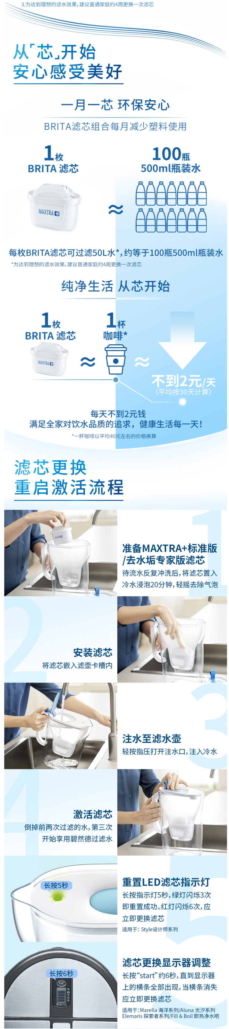 这款碧然德 第三代 MAXTRA+ 去水垢专家版滤芯,是专门针对中国水质研发设计,与MAXTRA+标准滤芯相比,减少水垢能力提高50%,这一效果的技术支撑来源于离子交换树脂含量的增加。