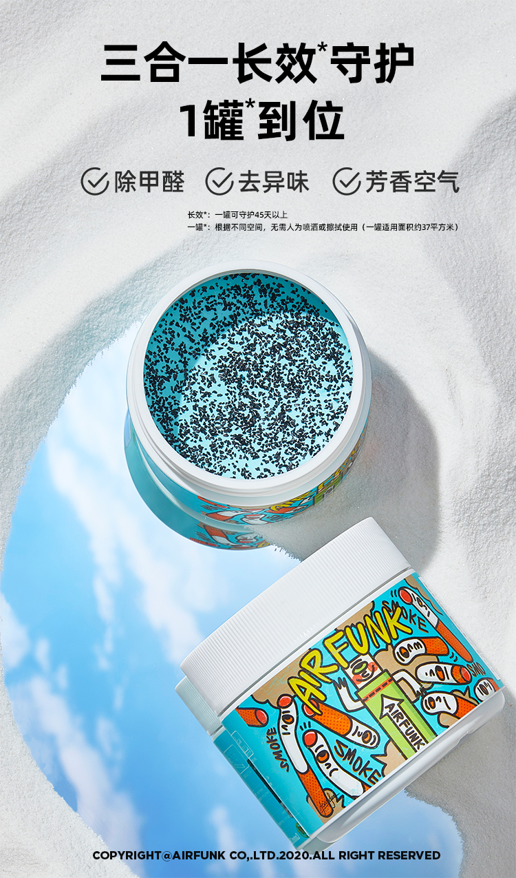 天猫airfunk旗舰店158元,可领30元优惠券,实付128元到手,规格是350g*3罐。一般一个房间放1盒。除醛率97.1% 天然配方母婴适用。