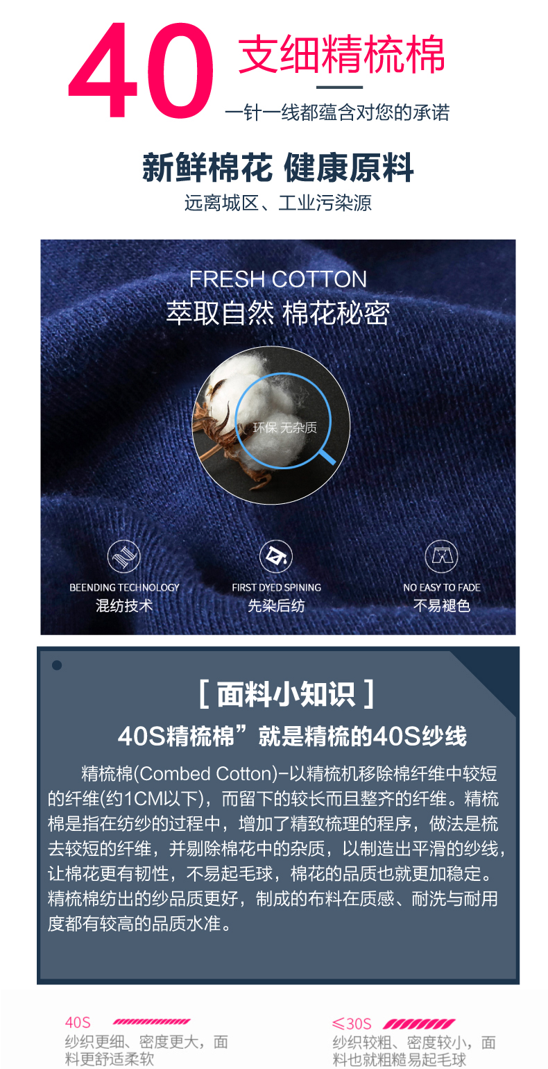「长绒棉」属中高档但又没到顶级水准,是多数人买得起的好面料。长绒棉占全球棉产量3%,生长周期长,含油量高不易板结,可织成高支纱线,制成布料后,会有普通棉没有的丝般光泽,其柔软度、亲肤度、透气性、色牢度等均远超普通棉。