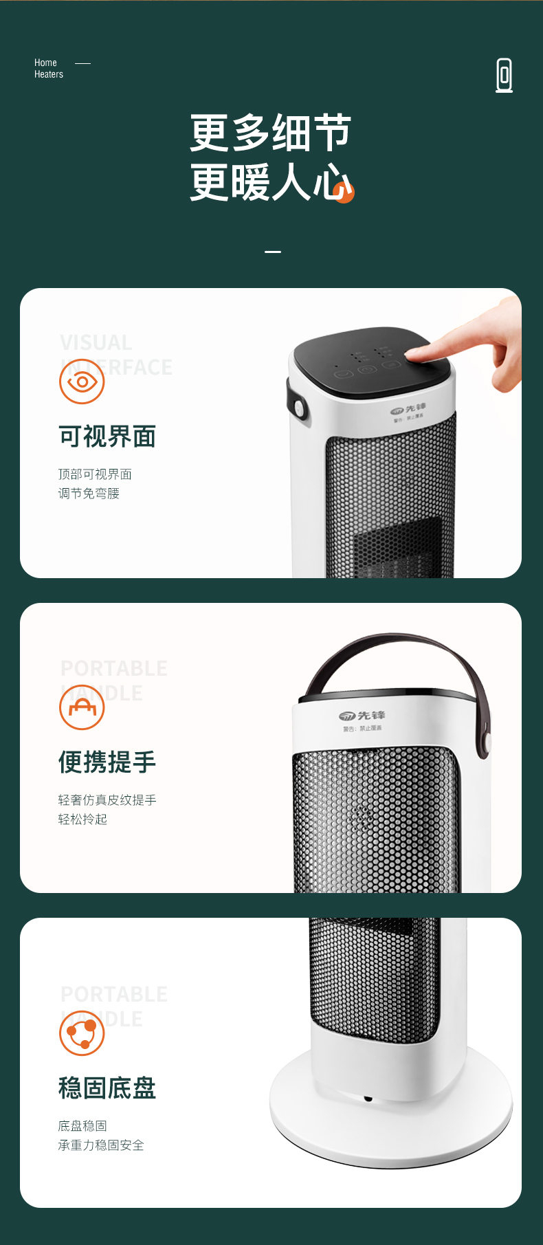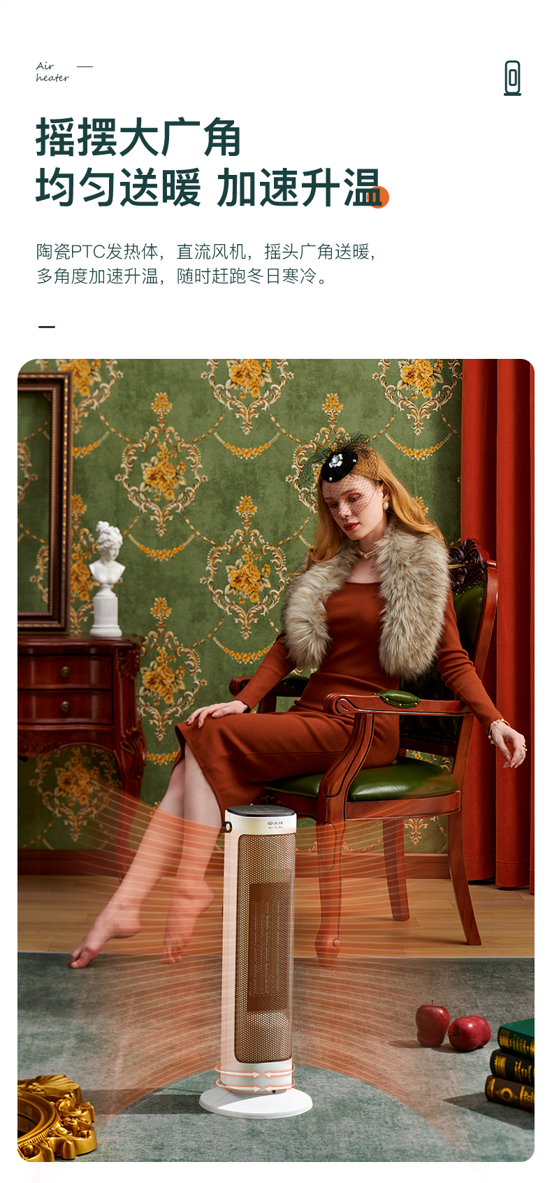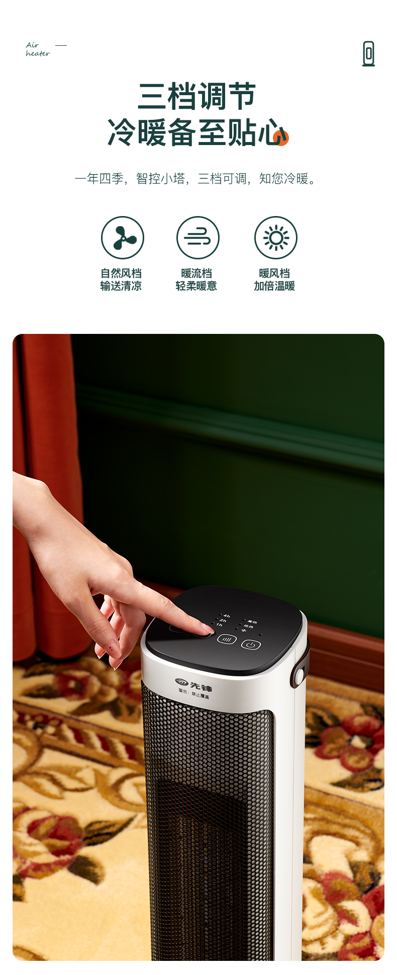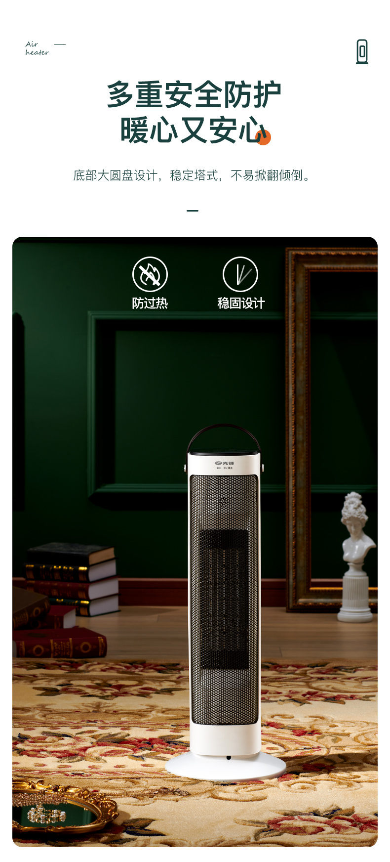 天猫苏宁易购官方旗舰店159元,下单立减50元,可领20元优惠券,实付89元到手,第1款机械款此价,2200W大功率,采用高效PTC陶瓷发热体,2档可调,热效更高,安全性高,45度左右摇头送暖,具有倾倒断电、过热保护等安全防护,细密钢网结构防止烫伤,无光、无明火、无噪音、静音取暖。