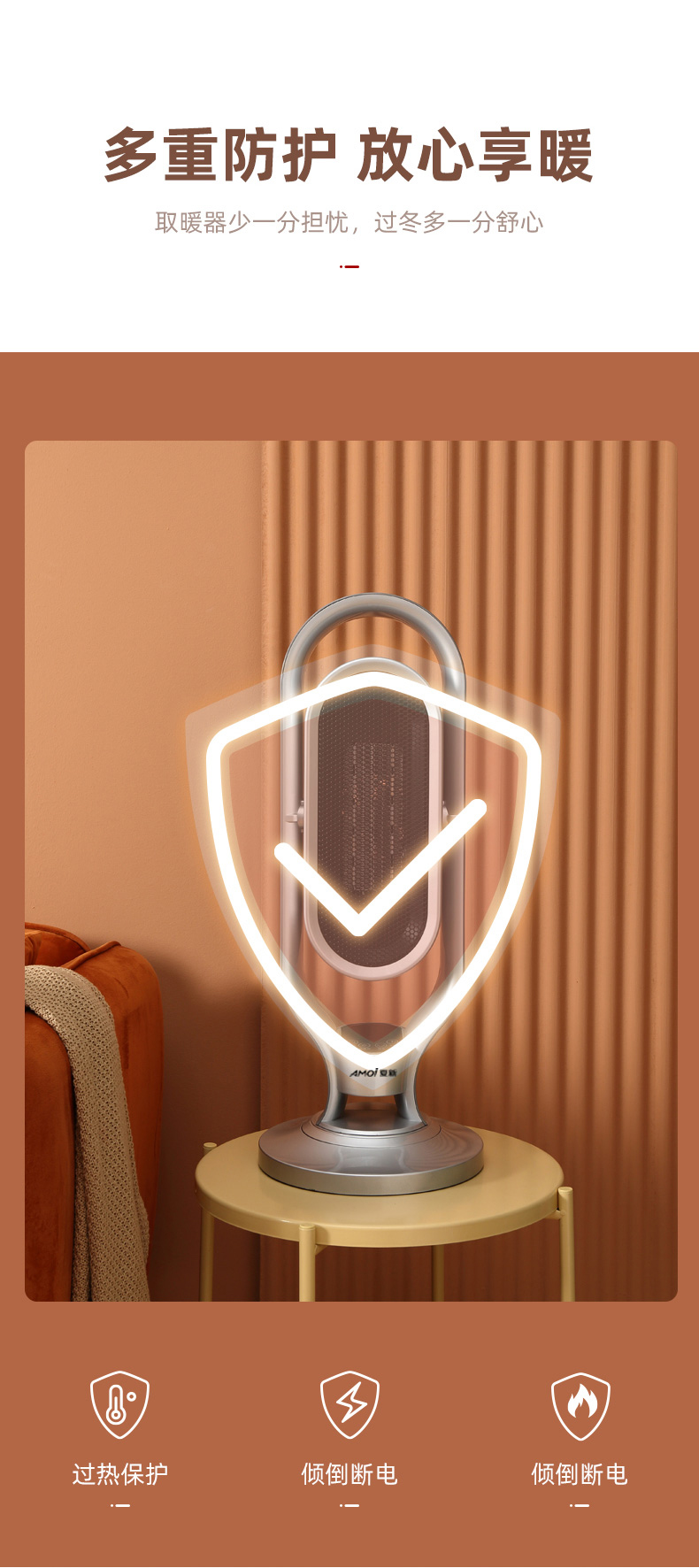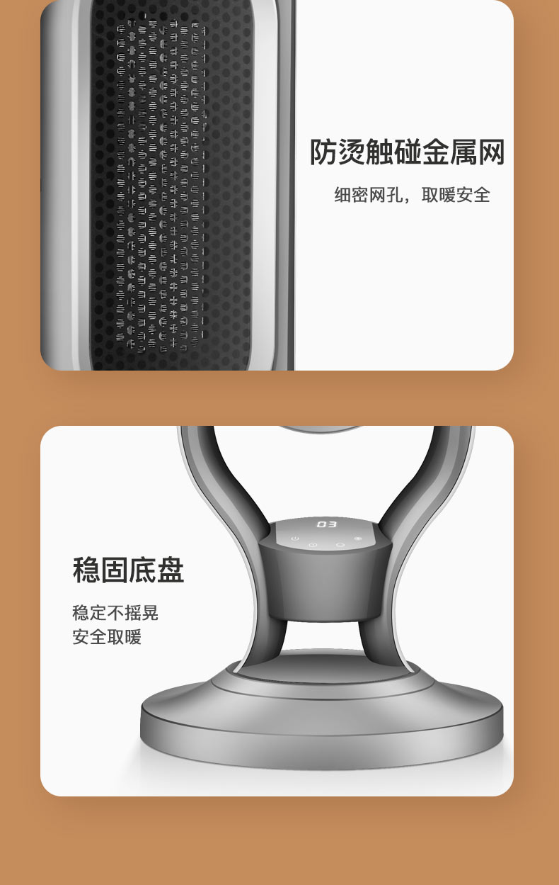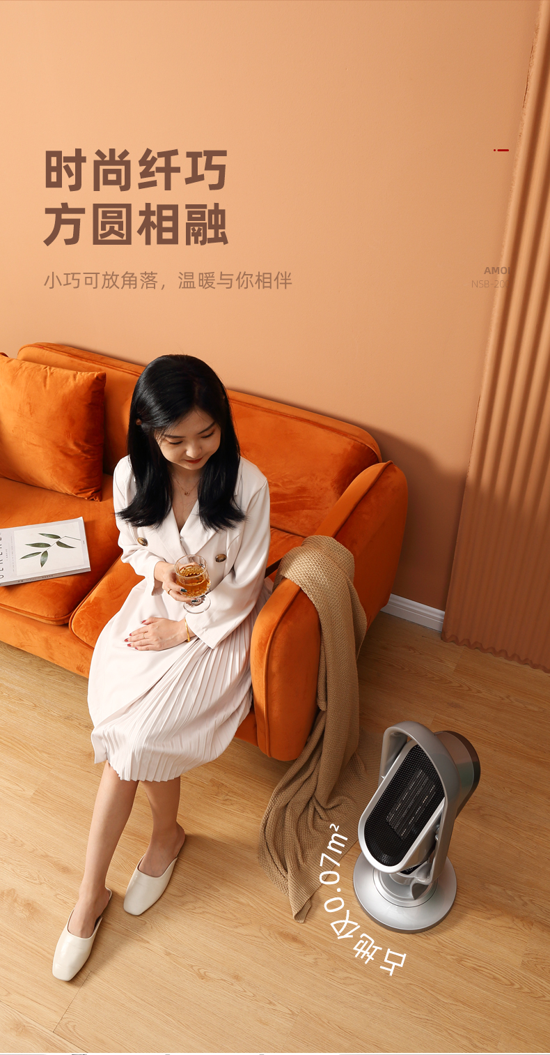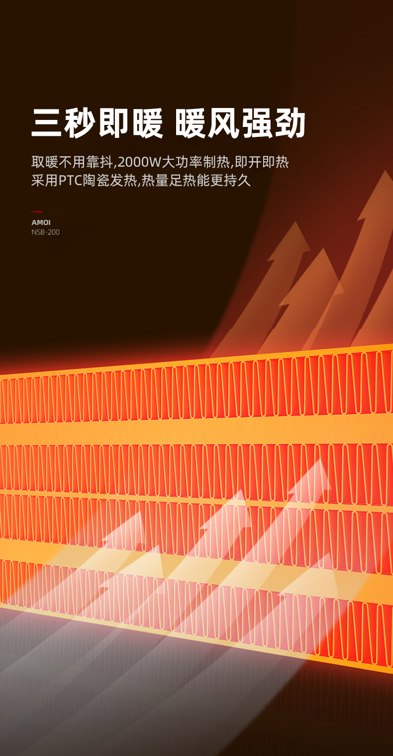 这款2000W立式电热风机,采用TPC陶瓷发热,即开即热,冷暖两用三档调节(1档40w自然风、2档1000w低热,2000w高热),可上下30度、左右70度广角摇头送风,热空气均匀对流,空间恒温,温暖全家,可居浴两用,具有倾倒断电、过热断电、防烫金属网、底盘加固不易倾倒等一系列保护措施,使用安全放心。