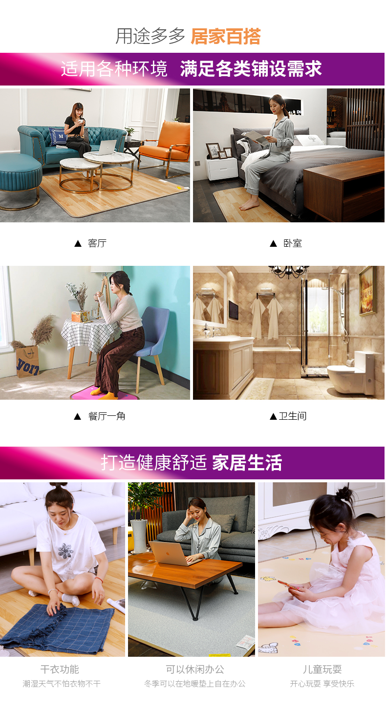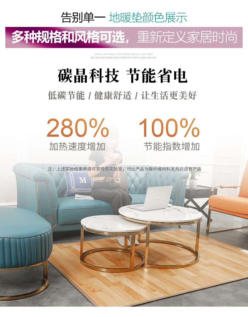 硅晶地暖作为新型采暖电器,具有发热快、制热连续、少占空间、节能省电的优点。