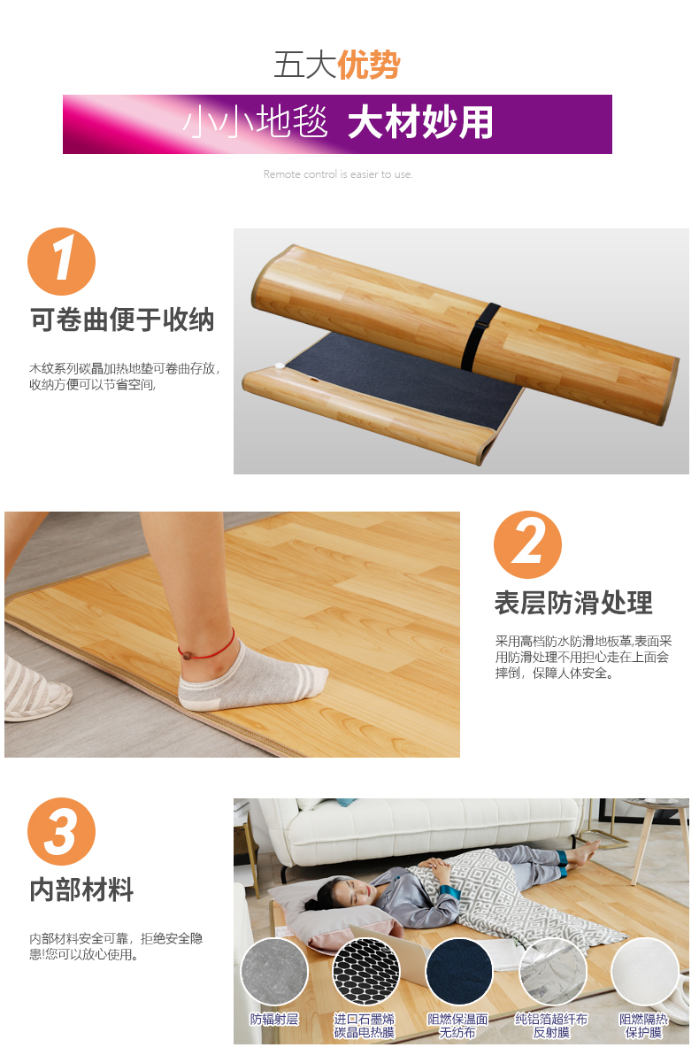 进口碳晶电热膜:韩国进口碳晶发热膜,碳晶分布更均匀,温差小,更安全;
