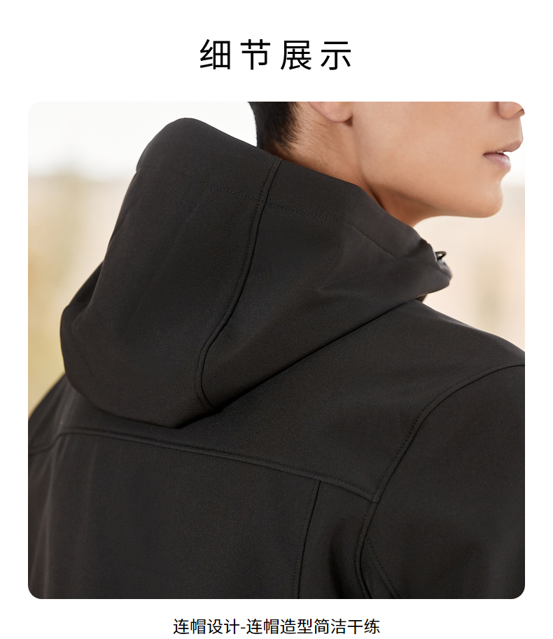 在款式方面,立体裁剪,能更好的贴合身型;新型3D连帽设计,防风保暖,还能阻挡雨水渗透;下摆设有可调节弹力卡扣,方便调节松紧,更防风保暖,胸袋采用可可西里主题印花拉链,细节丰富,方便储物。