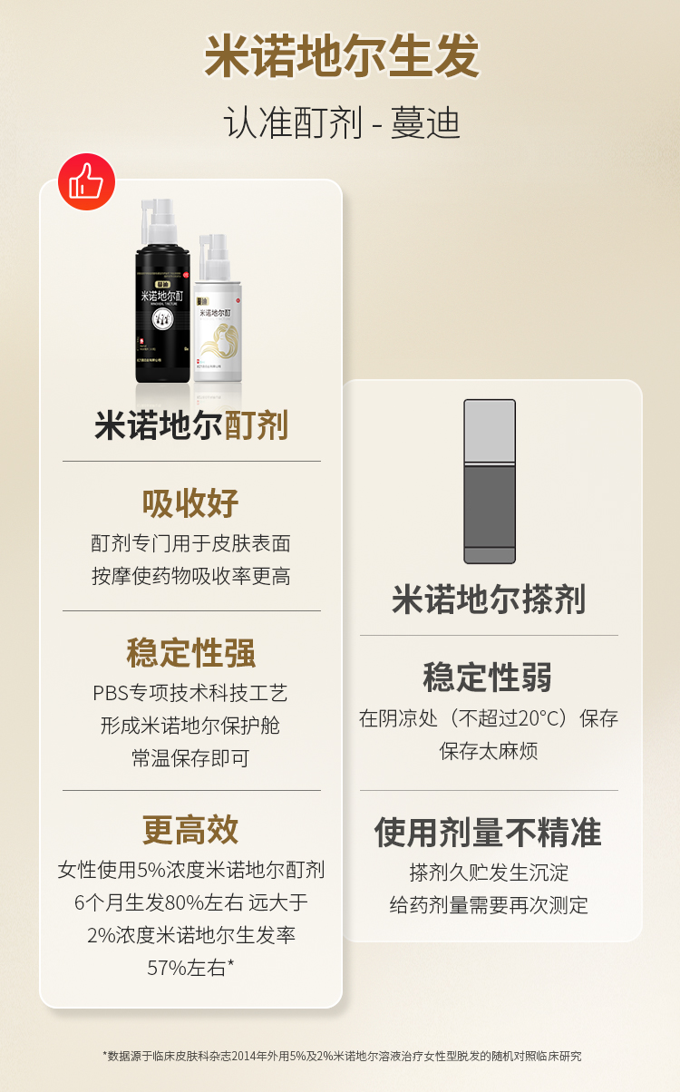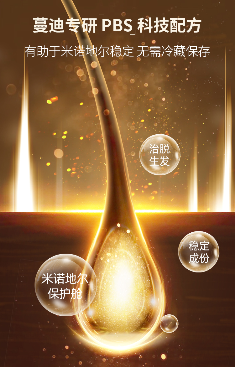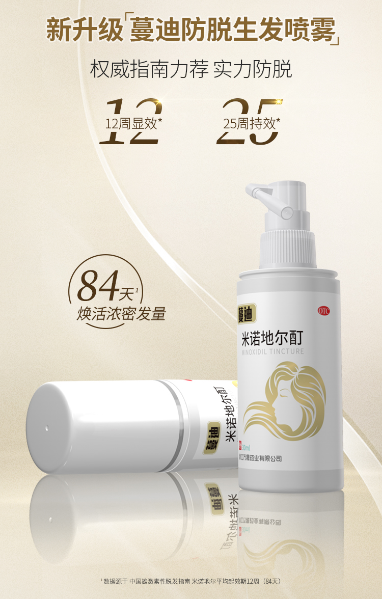 这款是国药准字OTC非处方药,是市面上真实有效的生发药用品,成份为米诺地尔,是一种周围血管舒张药,局部长期使用时,可刺激男性型脱发和斑秃患者的毛发生长。适用于男性雄激素源性脱发、女性雄激素源性脱发、斑秃患者。