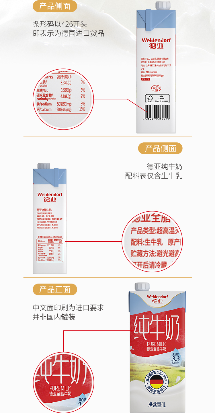 品利(上海)食品有限公司是一家正规的进口食品进口商和经销商,Weidendorf德亚是品利公司的自有品牌,其奶源采自澳大利亚和德国两地。