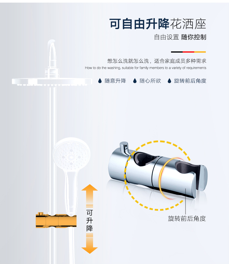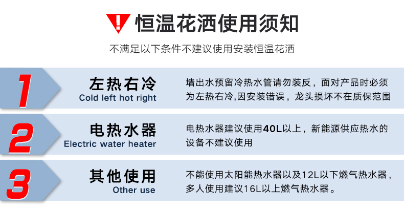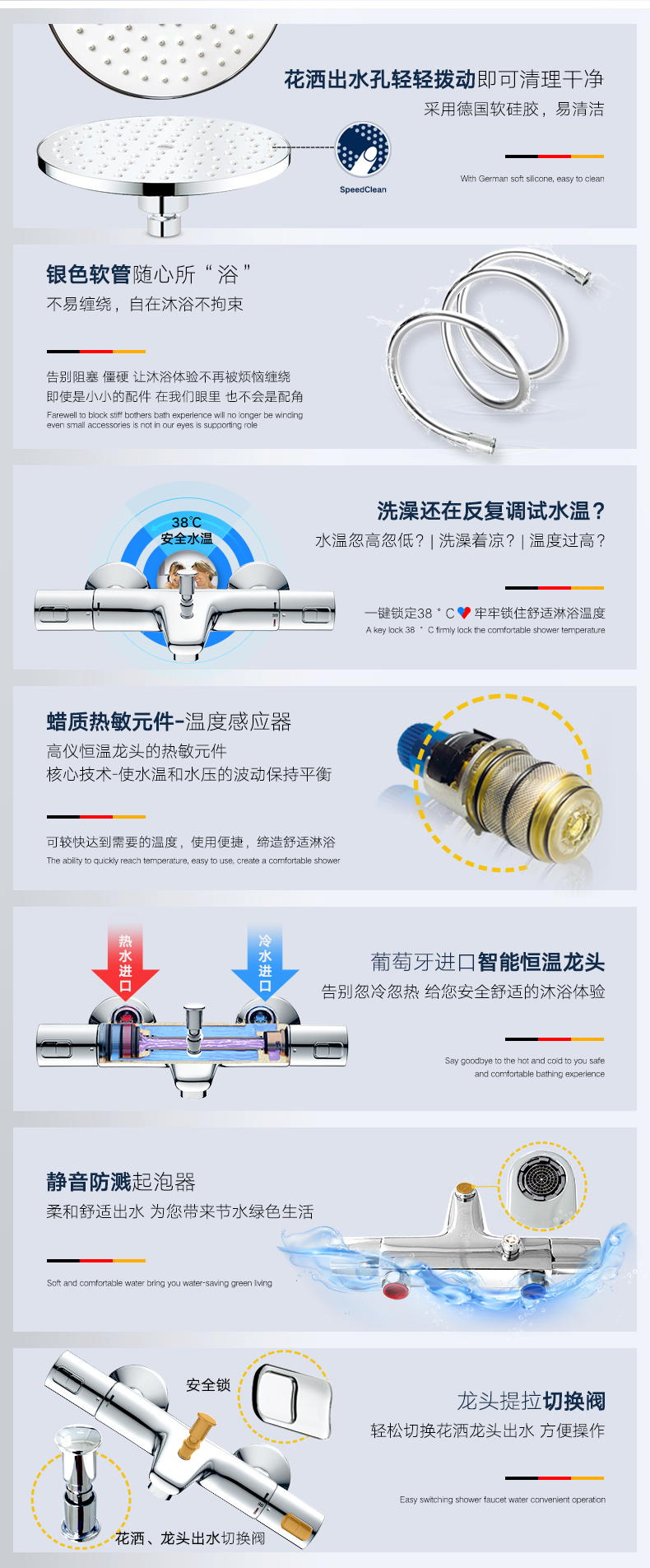 2、便捷:通常带有38-40摄氏度刻度,不用每次掰龙头调试水温,省事的同时也延长了龙头寿命