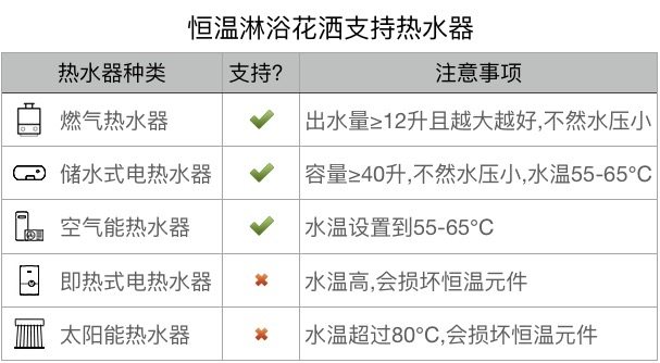 4、燃气热水器:燃气热水器需12升以上,不然水压不够。多数燃气可调水温,但考虑到水压和火力波动,建议调到大火大流量,再经恒温龙头调温。