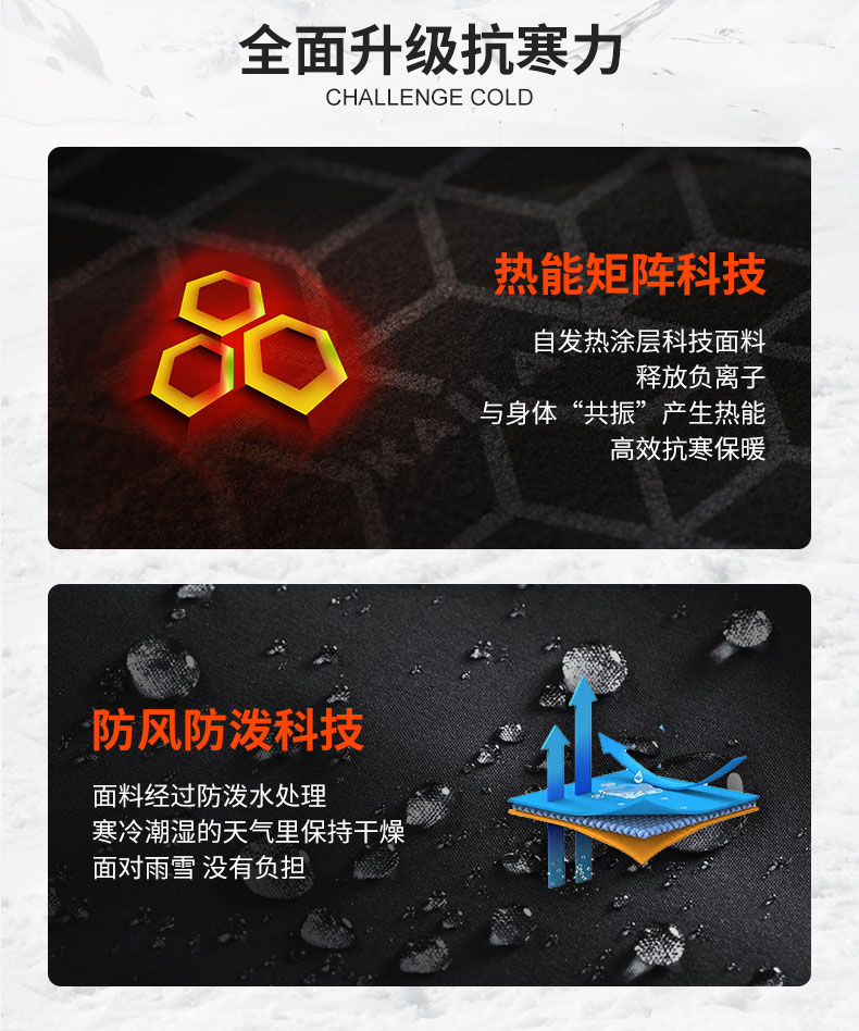 面料经过抗静电处理,整衣还采用除电银纤维车缝,大大避免静电的产生。腰头内贴的防刮面料,穿着更舒适不摩擦;腰头两侧内置橡筋设计,穿着更体贴;YKK品质拉链,带有拉手绳,耐低温防滑户外带手套时开合也很方便。