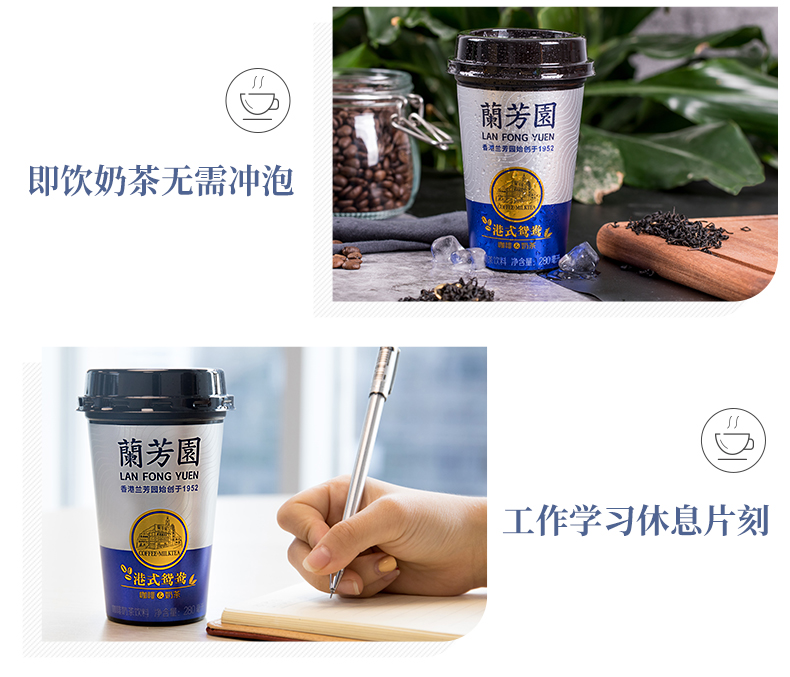 这款港式鸳鸯是兰芳园继丝袜奶茶之后的又一力作,将奶茶和咖啡融合,兼具奶味、茶味和咖啡味,口感丰富,回味无穷,红茶的温凉和咖啡的燥热相结合,减少咖啡因对人体的刺激,健康轻提神,原料优选印度阿萨姆红茶、澳洲牛奶和阿拉比卡咖啡豆精心配制,饮用安全放心。