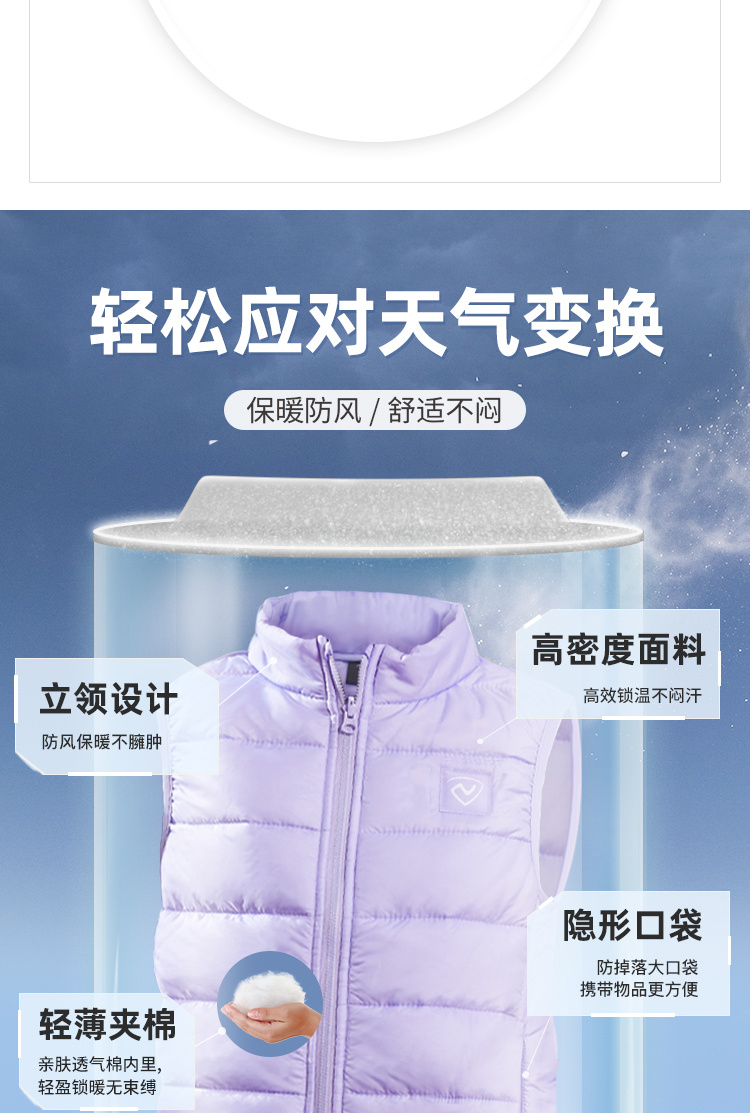 这款Northland 诺诗兰 中大童保暖棉马甲,采用防风高密度面料,同时采用顺滑拉链更保暖,肩部使用松紧包边锁温设计,隐形口袋随身携带物品更方便;夹棉材质,保暖柔软;通配内胆设计,可作为内胆搭配NORTHLAND三穿夹克外壳使用,季节变换随心搭配;