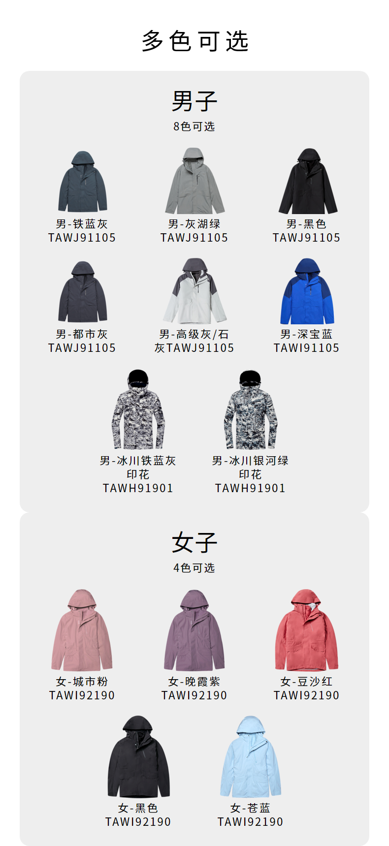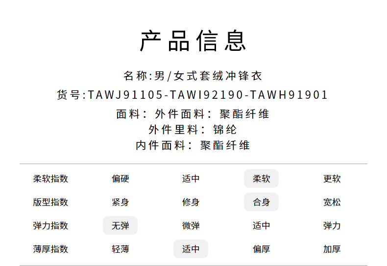 在款式方面,立体裁剪,能更好的贴合身型;新型3D连帽设计,防风保暖,还能阻挡雨水渗透;下摆设有可调节弹力卡扣,方便调节松紧,更防风保暖,胸袋采用可可西里主题印花拉链,细节丰富,方便储物。