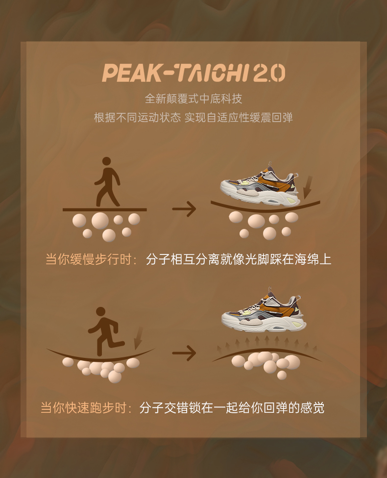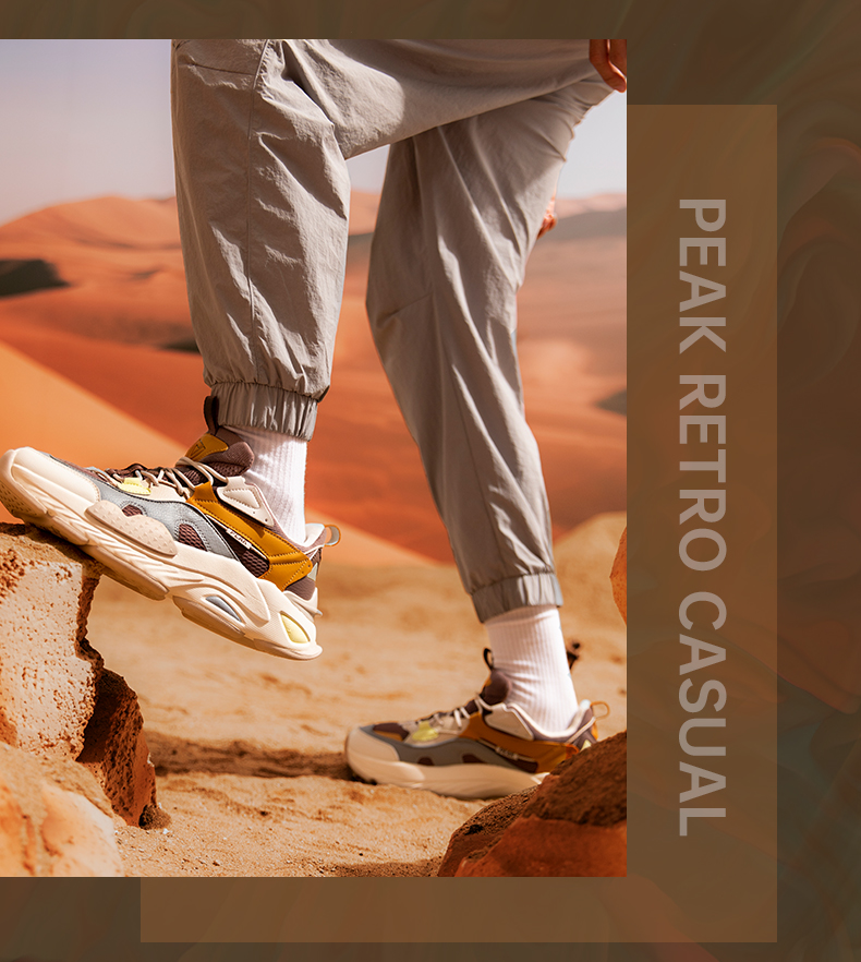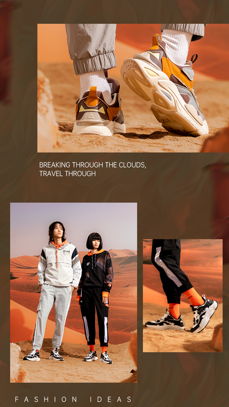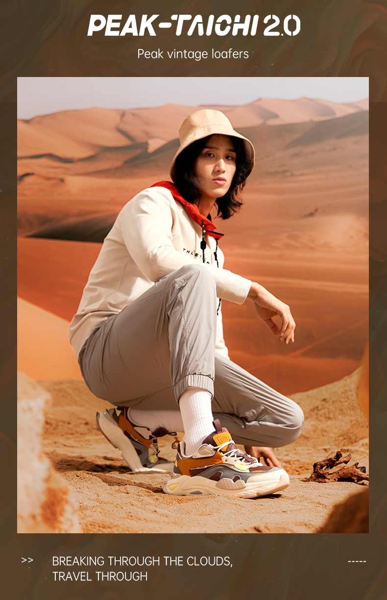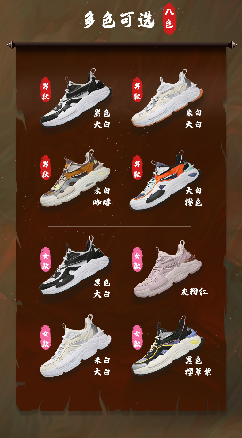 态极“熠熠”以米黄色为主色调,红黄作为点睛之色,鞋头延续至鞋身的国风图案是从中国古建筑“天圆地方”中汲取灵感,象征着四方太平,富贵吉祥;后跟精致的穿绳结构,于细节处见不凡。与此同时,这种通过多处圆与方的几何形态语言表达,刷新视觉体验,将中国元素展现的淋漓尽致。