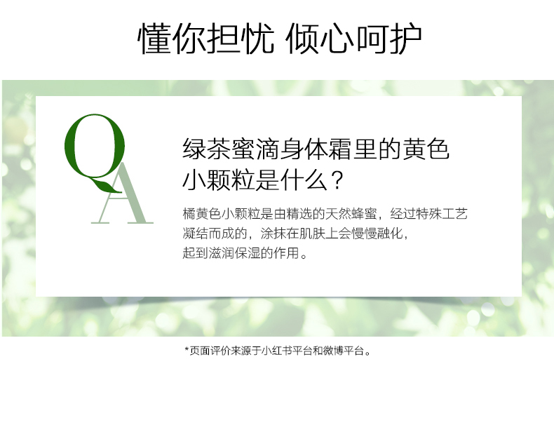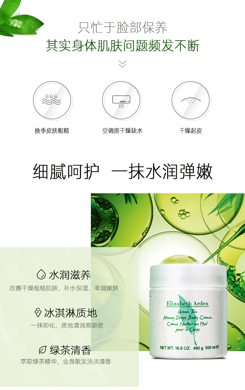 绿茶蜜滴身体乳,精选高山绿茶精华,低温萃取,淡淡清香,质地温和,保湿滋润,再加上独特小金豆,更好舒缓修复肌肤~