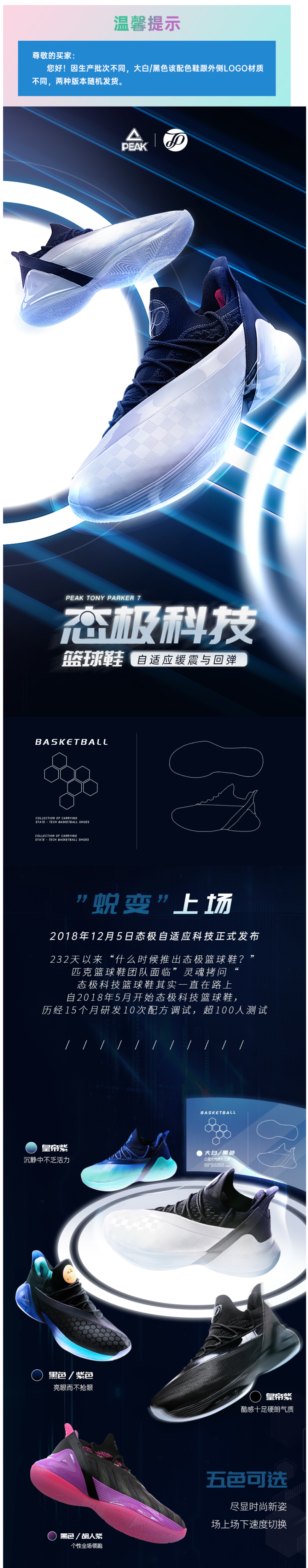 第一双搭载态极系统的篮球鞋是匹克旗下拥有不短历史的TP 9系列的第七代上,也是托尼帕克的签名鞋款。
