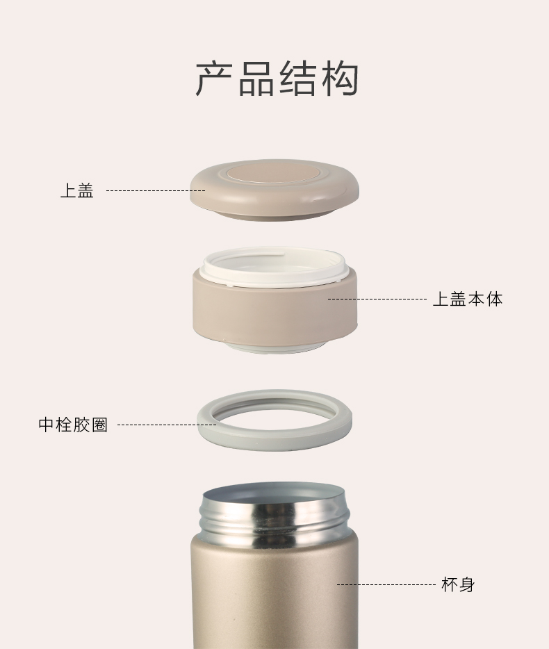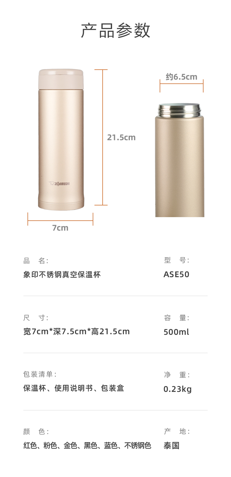 这款象印的不锈钢保温杯,越南产,超轻设计空杯约210g,拿在手里相当轻盈,杯身握持感也相当好;杯盖各个组件可以轻易卸开清洁。