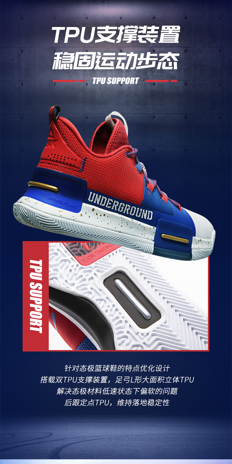 匹克态极 闪现男子篮球鞋,基于路威独特的球风格而打造,配色独特、鲜明个性,红蓝鸳鸯配色,添加路威专属个人卡通形象细节;搭载全掌匹克态极科技,独特的高分子智能材料带来自适应缓震于回弹,提供平稳落地缓震与“零时差”响应回弹。