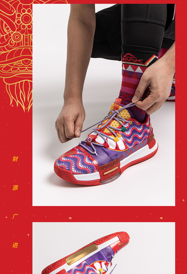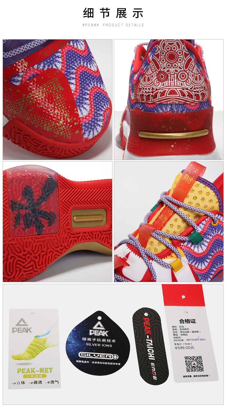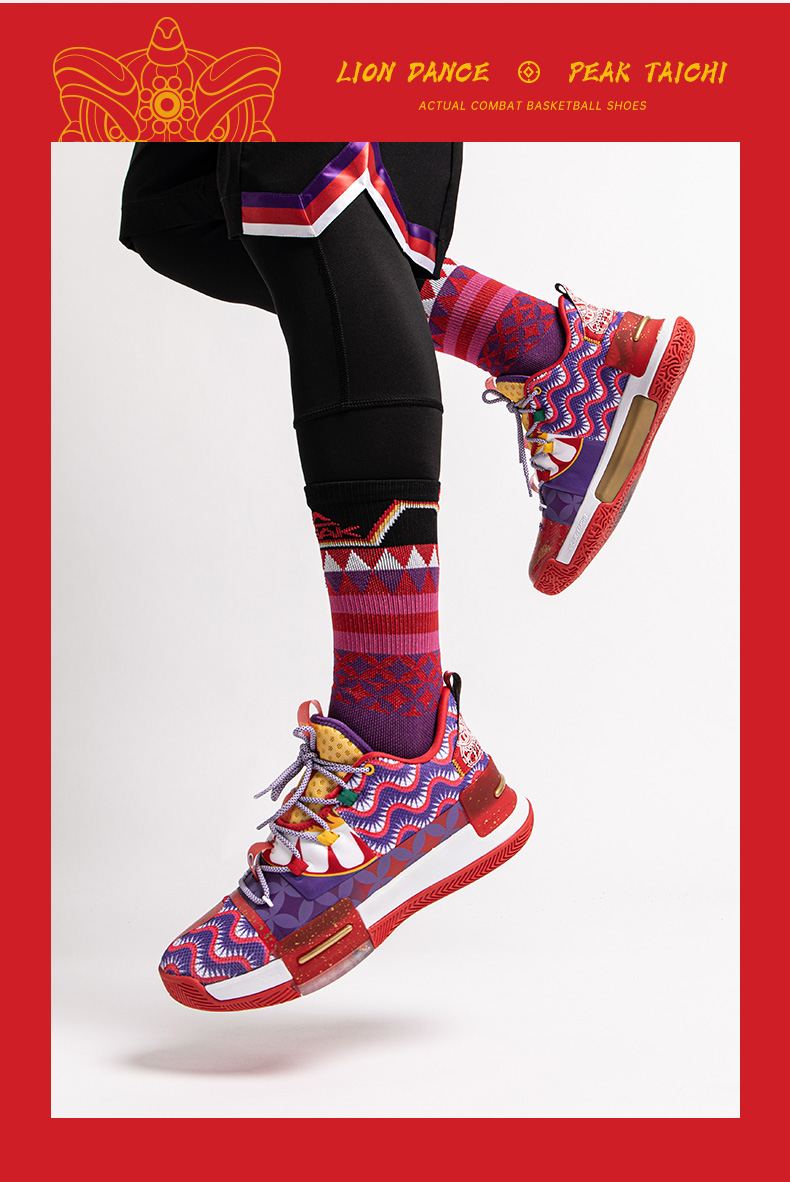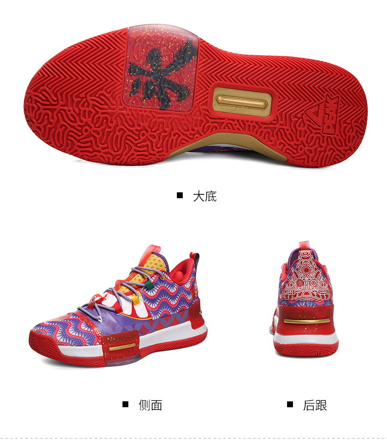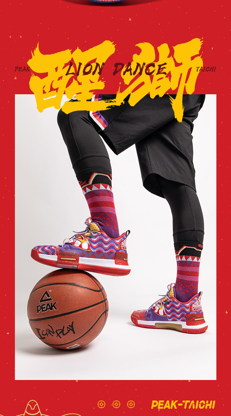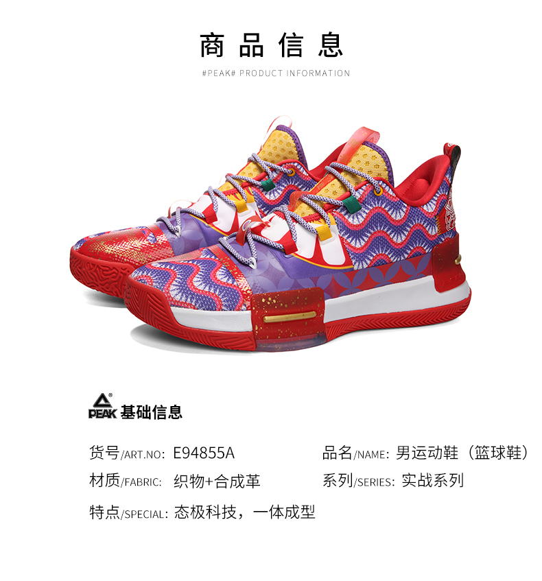 PEAK 匹克 态极闪现 醒狮配色 E94855A 男子篮球鞋,以中国舞狮文化为灵感,还原醒狮原貌,丰富细节带来中国风韵味,喜庆大气。全掌态极科技种地,弹柔并济,TPU支撑装置,稳固运动步态,拼贴式帮面,有效提升包裹性,高耐磨橡胶大底,适合外场实战。