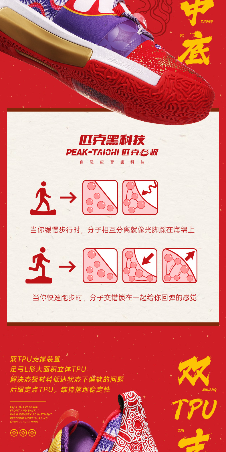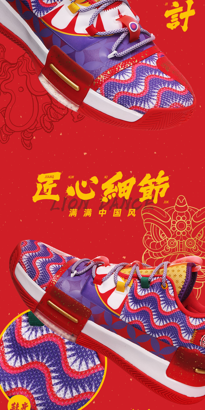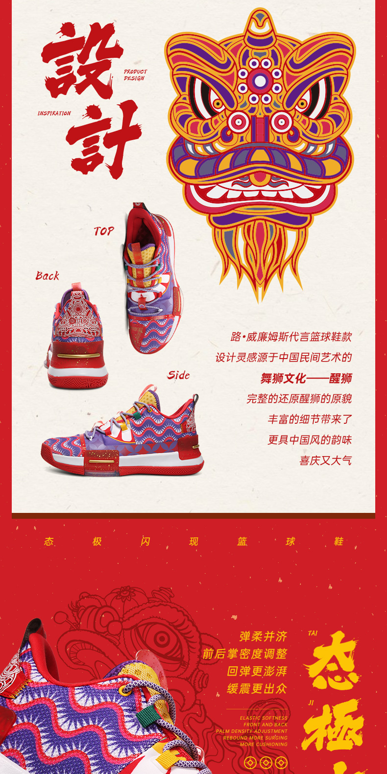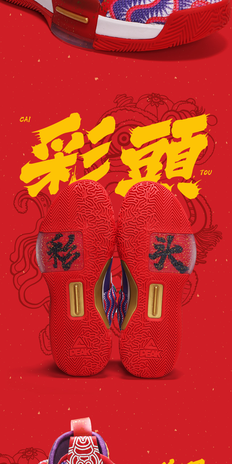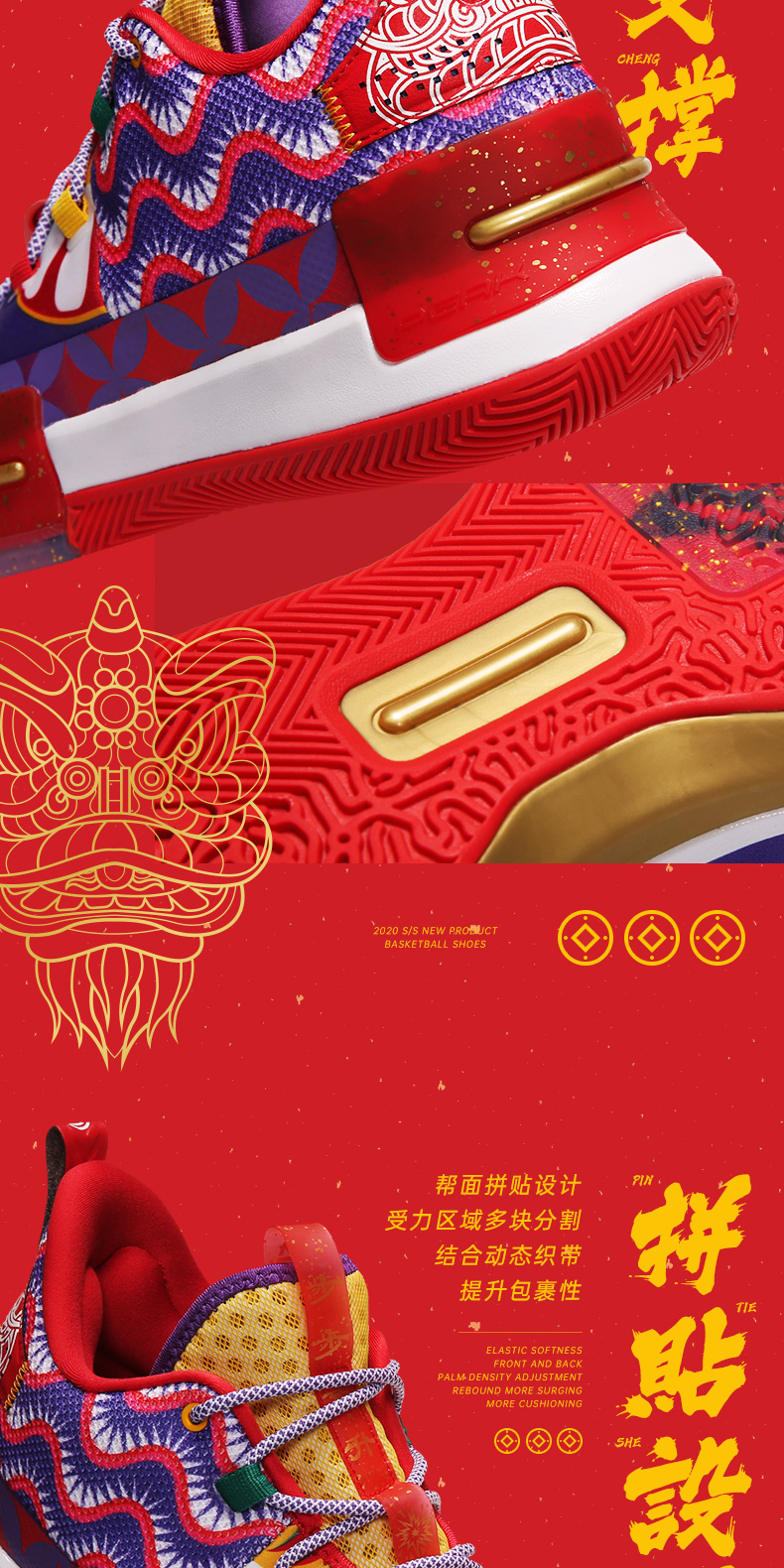 PEAK 匹克 态极闪现 醒狮配色 E94855A 男子篮球鞋,以中国舞狮文化为灵感,还原醒狮原貌,丰富细节带来中国风韵味,喜庆大气。全掌态极科技种地,弹柔并济,TPU支撑装置,稳固运动步态,拼贴式帮面,有效提升包裹性,高耐磨橡胶大底,适合外场实战。