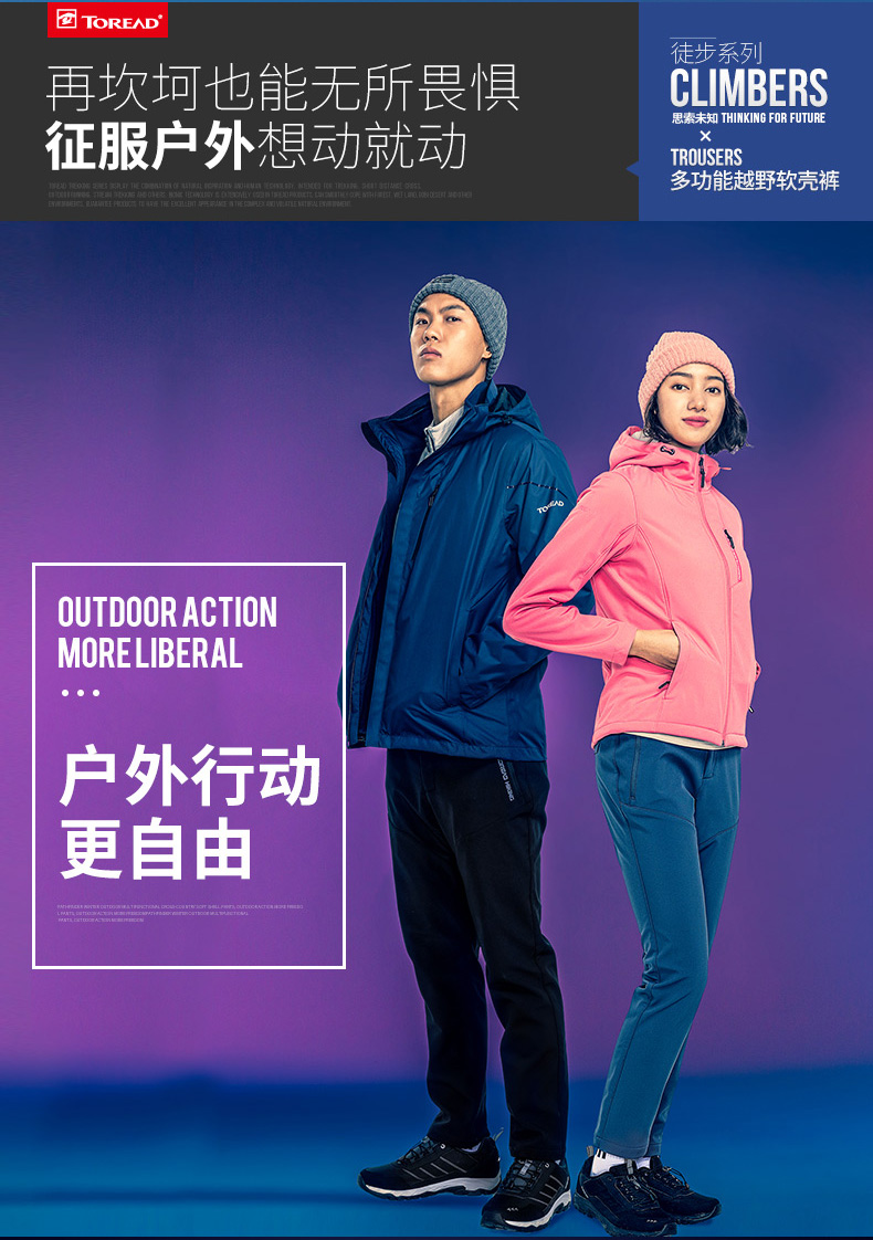 这款探路者 情侣款软壳裤,属于HIMEX极地系列,是探路者品牌在原有的Travelax旅行、Trekking徒步、Hero巅峰三大系列产品线之外,专门为探险地球三极(南极、北极、珠穆朗玛)研发定制的尖端户外装备系列。探险家王静女士身穿极地系列装备攀登过7大洲各自最高峰和地球两极。