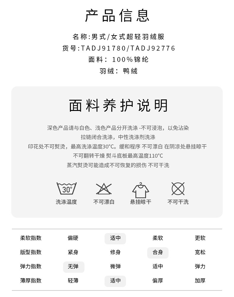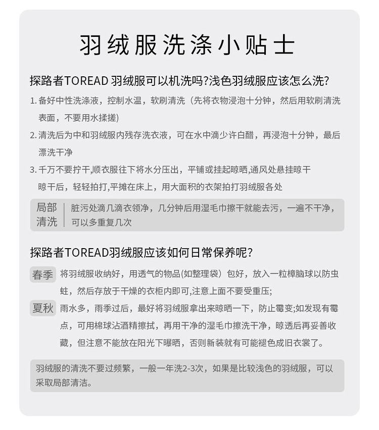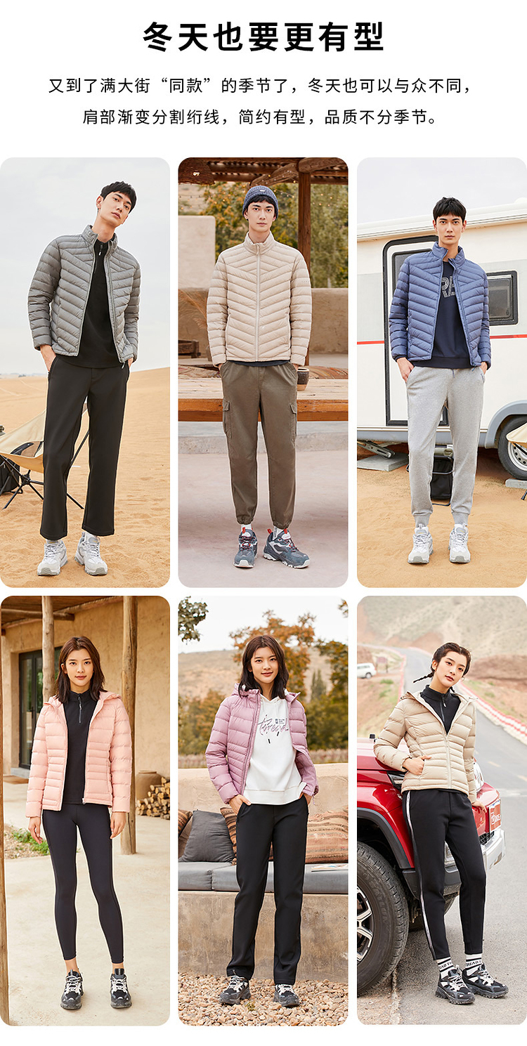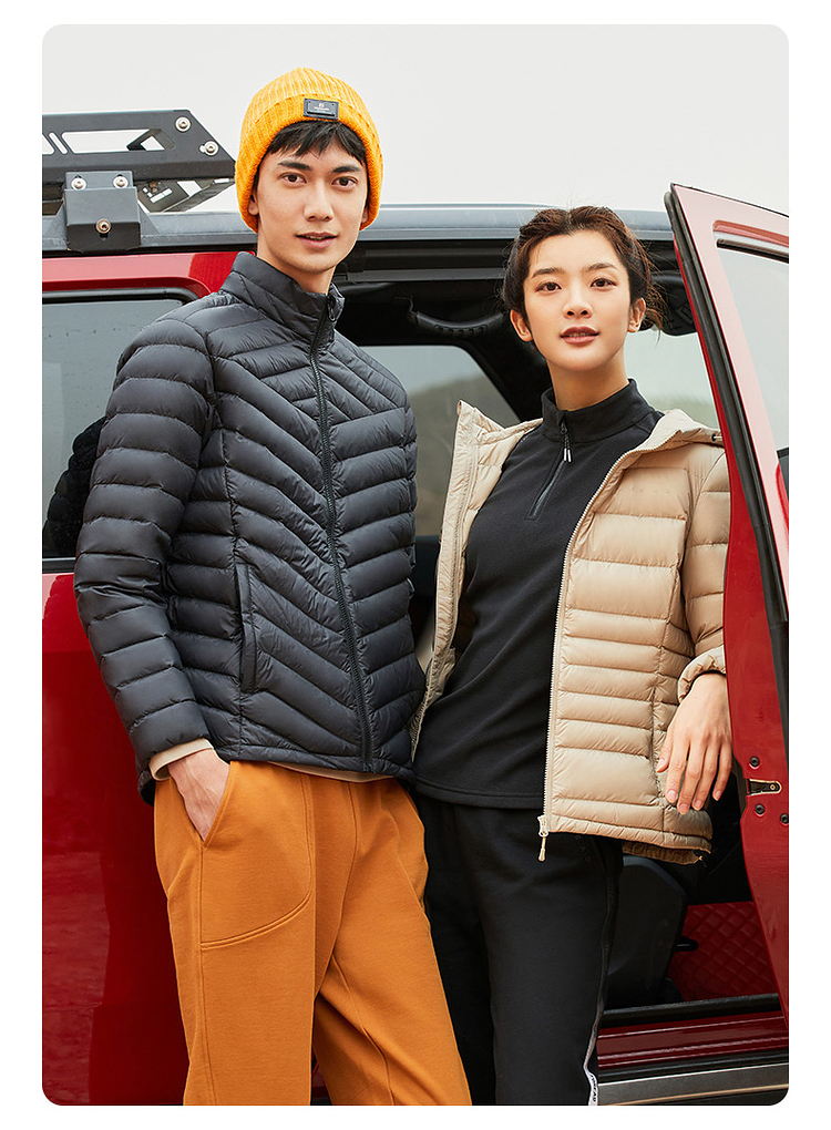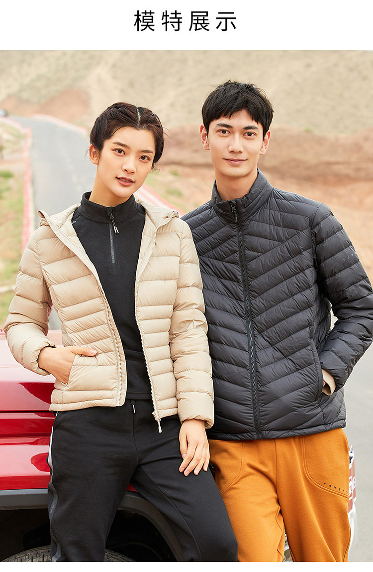 探路者的这款羽绒服, 从充绒量上来说,属于轻薄款,适合春秋季和初入冬时穿。采用20D的超轻薄密度尼龙面料,缝线细致,防钻绒;衣服表面还加入持久耐洗防泼水技术,防水挡风,雨雪天也不怕。