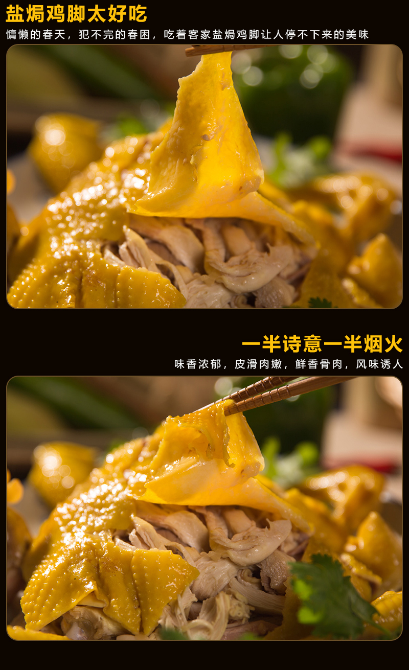 这款盐焗鸡是客家人经典的美食,来自于盐焗鸡的发源地——梅州,优选9个月以上的土鸡,经过古法制造,咸香鲜嫩,熟烂脱骨,“身披黄金甲,满口咸香脆”,咸香味透骨髓,表皮脆嫩,入口细腻柔滑。