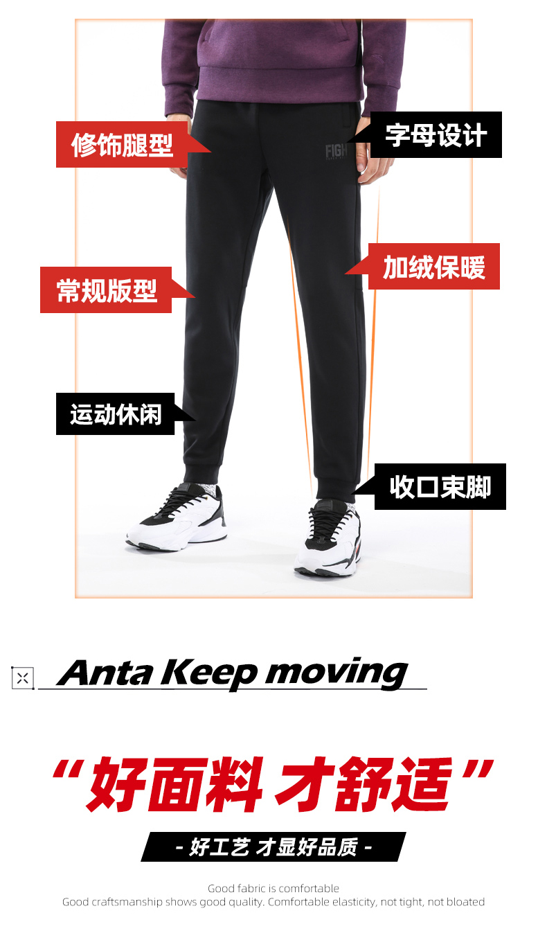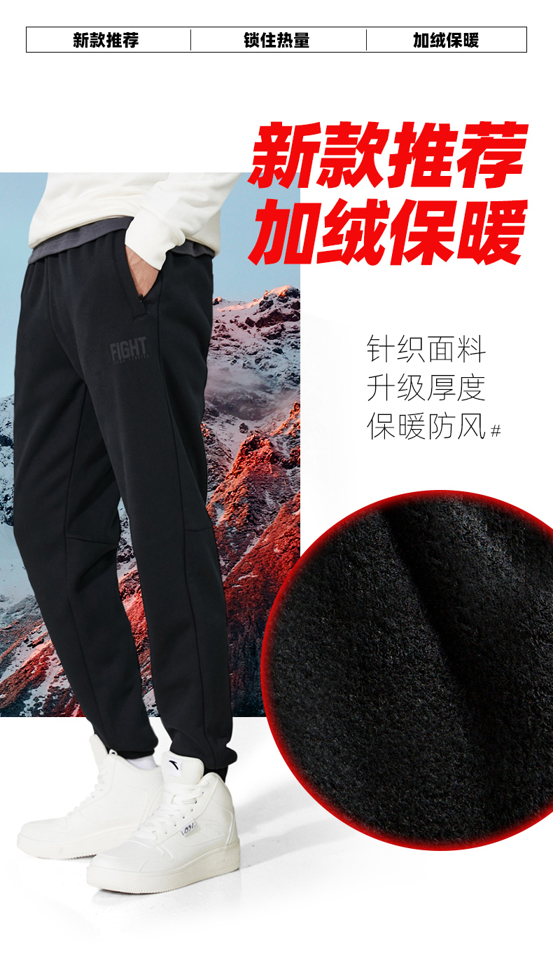 安踏加厚休闲裤,舒适棉涤混纺针织面料,内里加绒设计,锁住热量,宽松版型裤脚收口设计,舒适显瘦,日常休闲,运动都能穿。