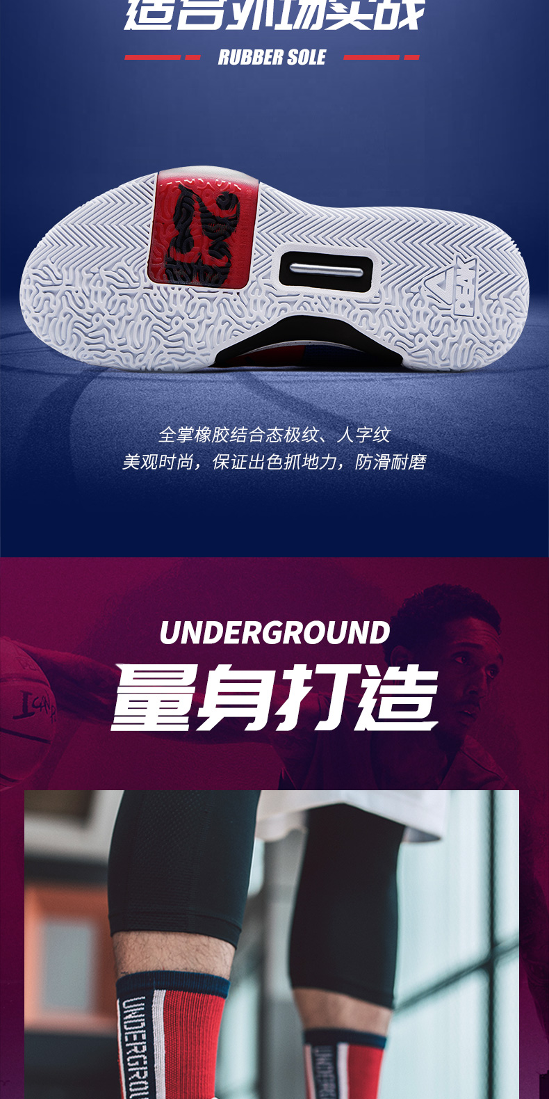 鞋面动态模魔术贴设计配合KPU绑带,实现更为紧致的包裹体验,后跟180°环抱式支撑装置设计,使整体稳定性大幅度提升。鞋面采用高强度TPU透气网布,实现鞋面韧性的同时有更出众的透气性。以雪地防滑轮胎链条设计为灵感,耐磨耐穿。