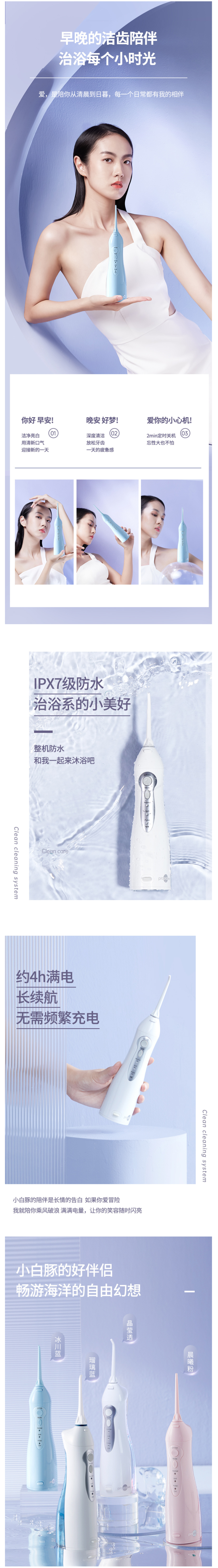 0.6mm的纤细水流,将水流温柔包裹齿间,全方位清洁护齿不伤牙龈。360°多维旋转喷头,多维度清洁牙缝。IPX7级整机防水,连续4小时可满电。