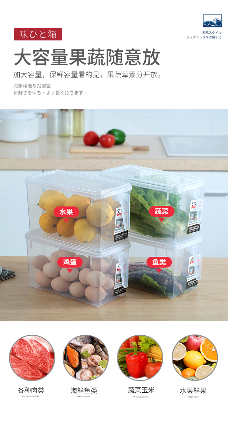 这款聪拓厨房冰箱收纳盒,使用食品级透明PP材质制成,耐-20℃~120℃,可以直接接触食物,能存放水果、蔬菜和肉类,抽屉式把手易于拿取,自带盖子不会导致食物串味。