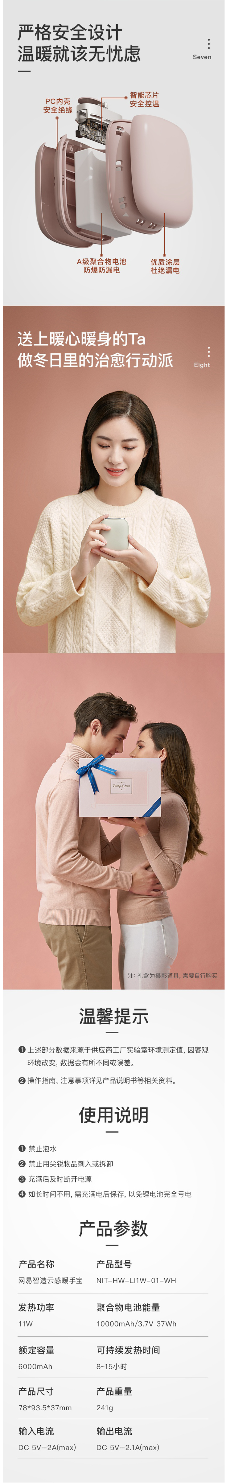 这款网易智造云感暖手宝,不仅是暖手宝,还是10000mAh的充电宝。当它是暖手宝时:使用智能温度控制,持久发热恒温保暧。
