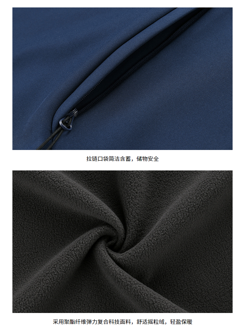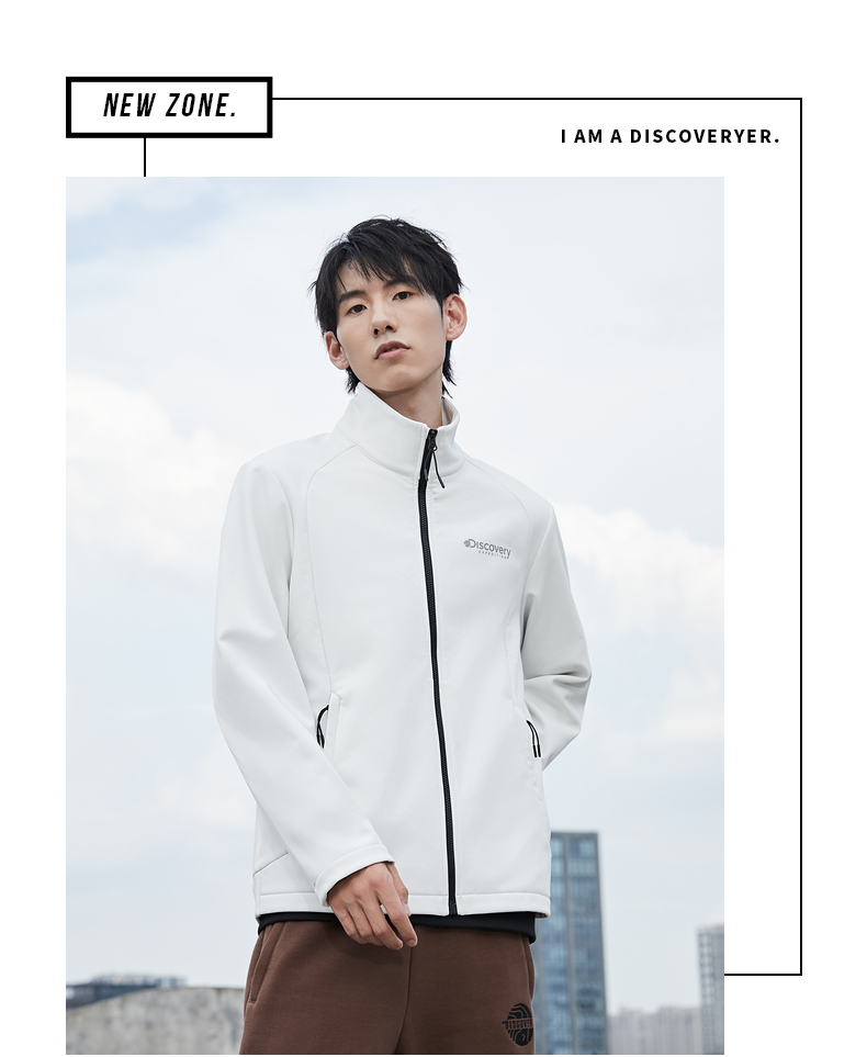 这款Discovery 男士 软壳外套,外层面料集防风防泼水、轻量透气于一体,相比硬壳(冲锋衣),具有更加良好的透气性,面料中可以混入10%的弹力纤维,弹力伸展,即使运动中也可以提供很好的舒适性,而且衣服摩擦时的声音会小很多,穿着更舒适。