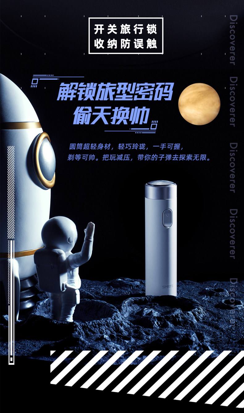 这款剃须刀非常适合放在车上应急或者是出差时带着,设计师将它“小”的特点发挥到了极致,丢在口袋里就可以,满足商务出行轻装简行的需求。
