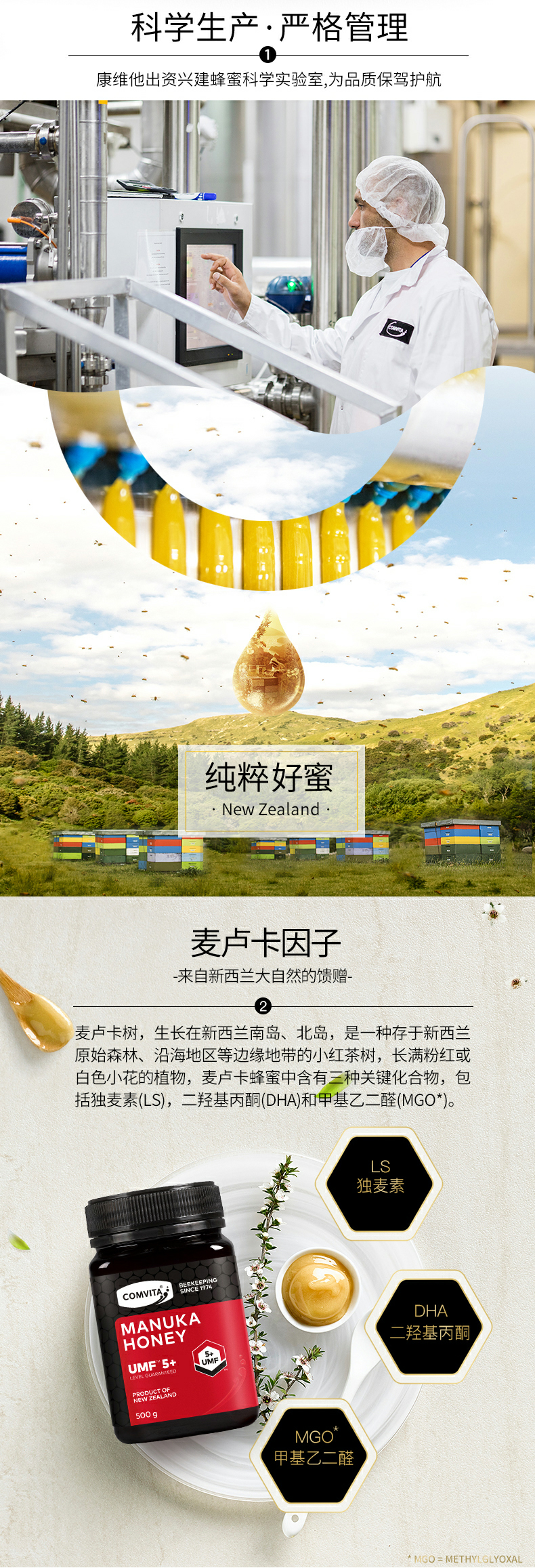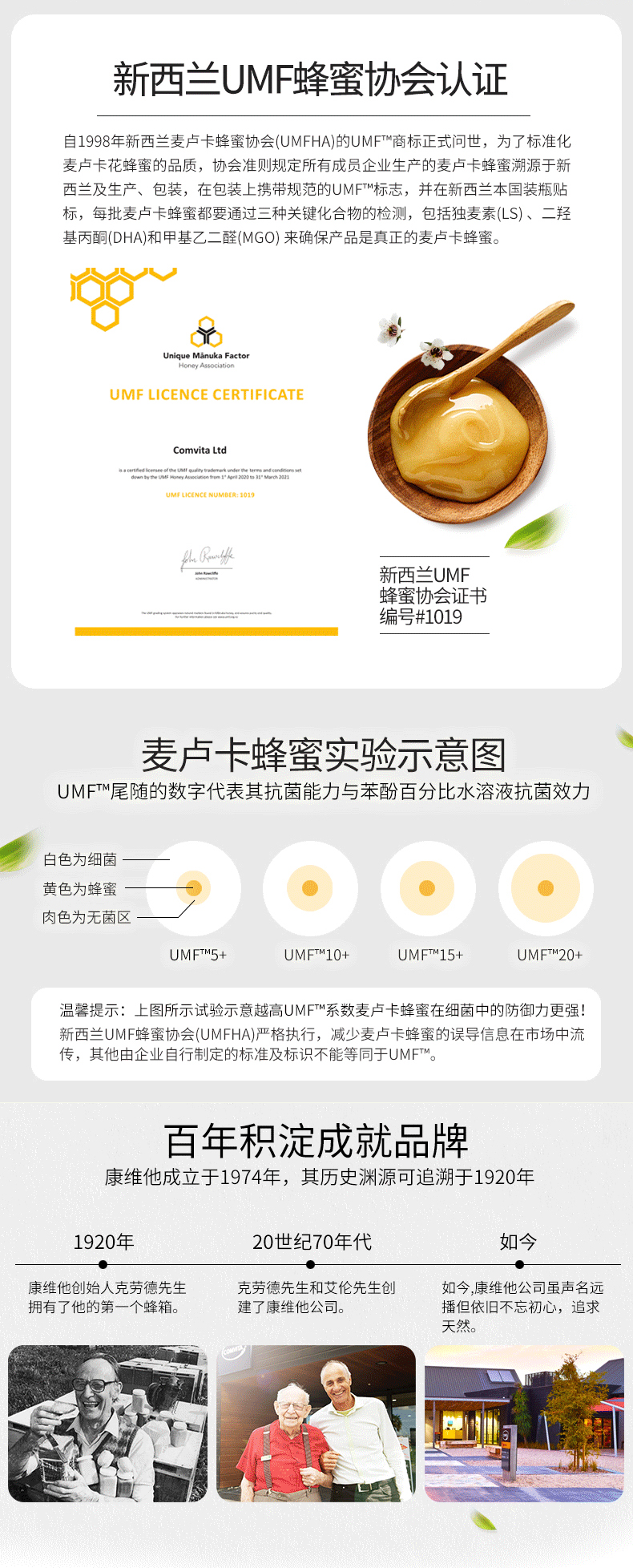 康维他Comvita是来自新西兰的天然产品品牌,旗下的Manuka蜂蜜常见于新西兰本地超市,可以说是国内能买到的靠谱蜂蜜之一。产自新西兰的蜂蜜中含有Manuka麦卢卡树中的独有活性物质,能够辅助治疗和预防,以强健消化系统,护理肌胃及治理伤口功效显著而闻名世界各地。