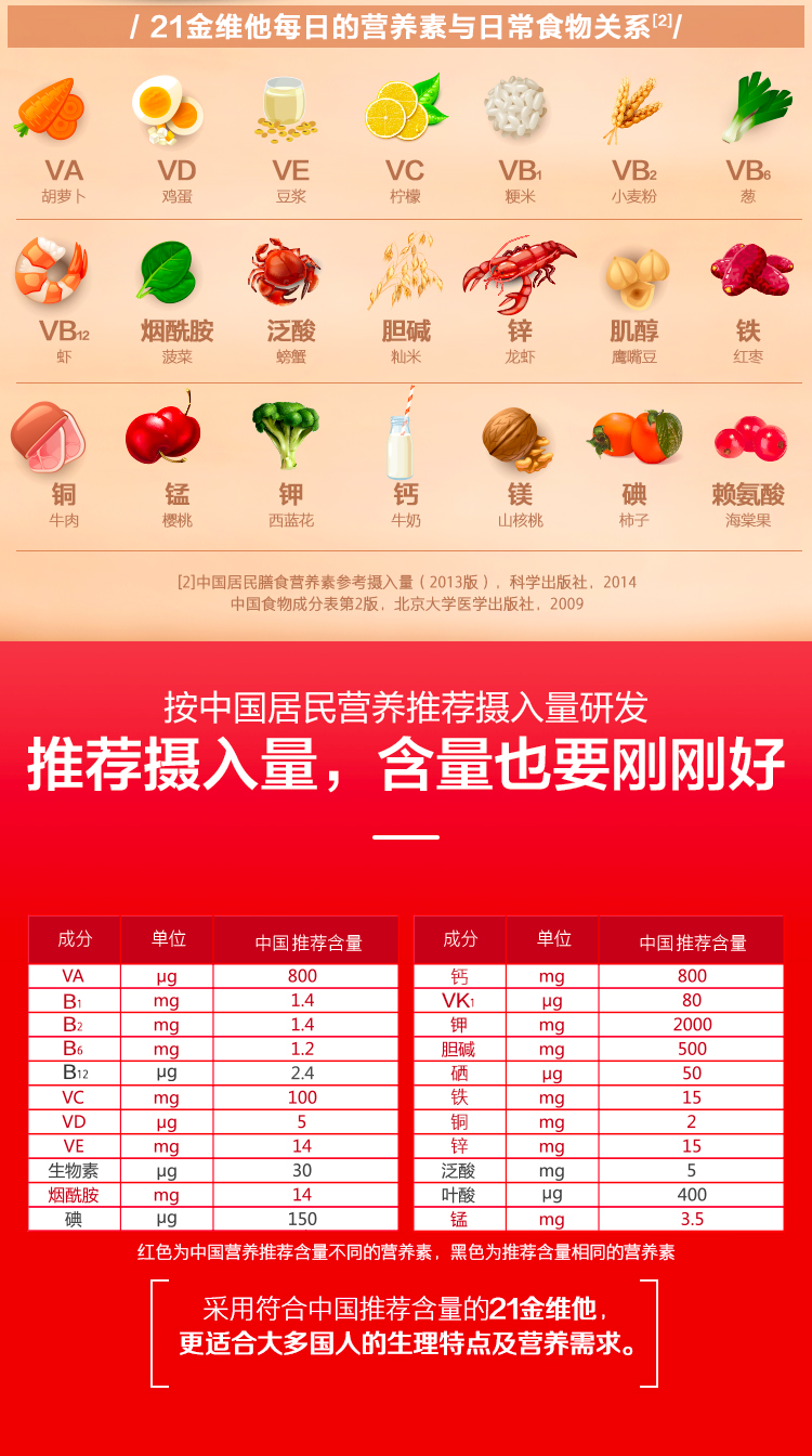 根据国人体质精确配比的21种维生素和矿物质,有3层包衣有效抗氧化,促吸收,用于预防和治疗因维生素与矿物质缺乏所引起的各种疾病。