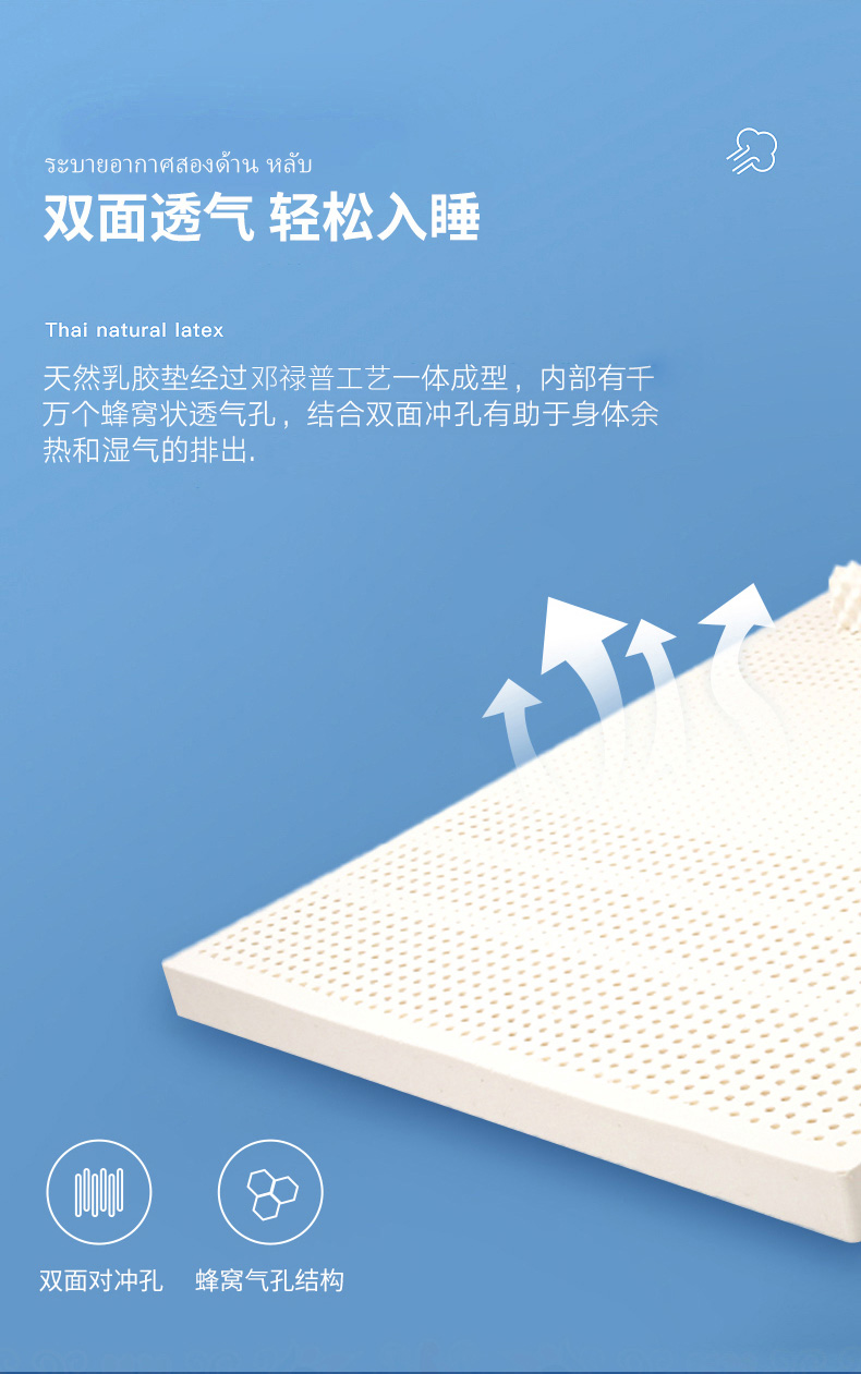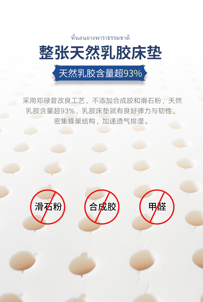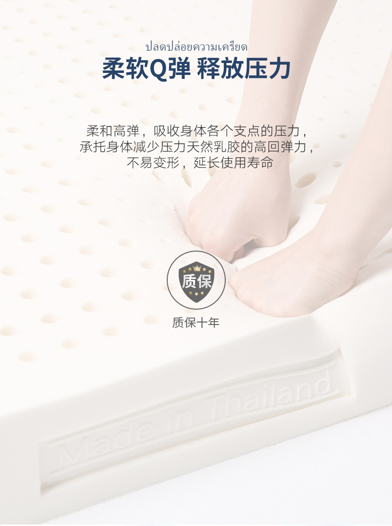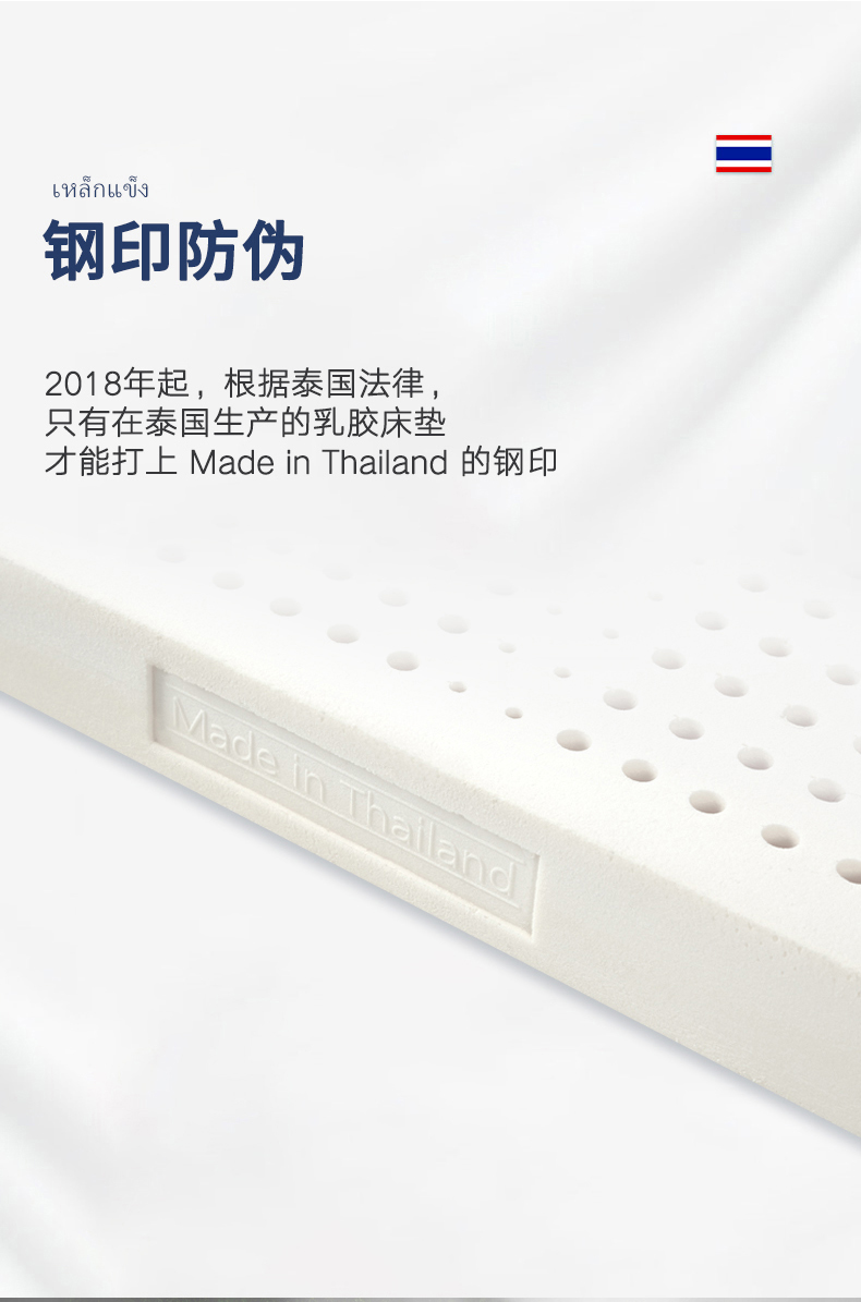 目前也是泰国副总理朱林阁下推荐的乳胶品牌; 这款乳胶床垫采用泰国新鲜乳胶原液生产,清香自然,透气轻盈,邓禄普物理发泡工艺,乳胶含量93%以上,防螨抗菌,贴合身体曲线,舒适承托,能够有效改善睡眠质量;下单即送配套床套+两个乳胶枕头;此款有多个尺寸规格可选,可满足众多人的需求。