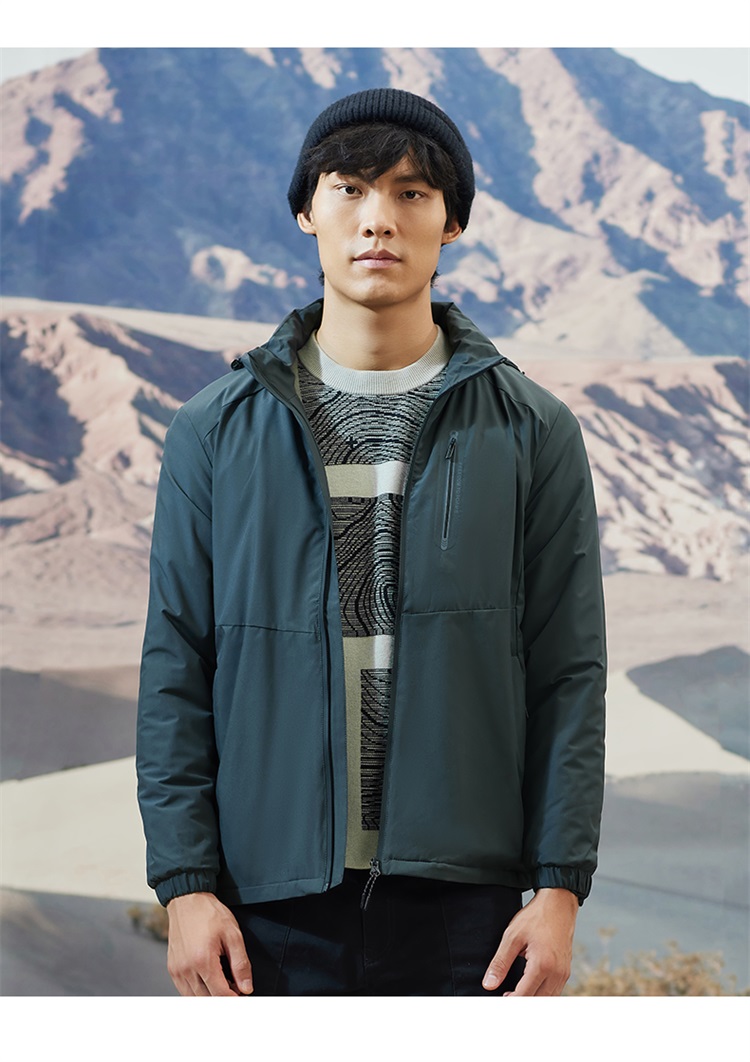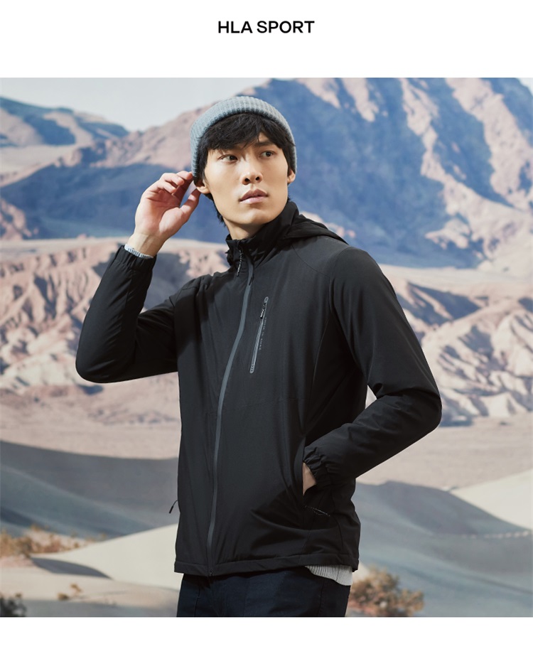 海澜之家这款是防风保暖夹克,使用近两年流行的复合面料,外层的是高密度防风面料,防风的同时也防泼水;里面是抓绒保暖材质,里外两层结构紧密交织在一起。