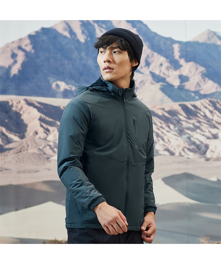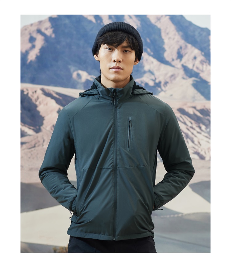 这种防风保暖夹克,中等厚度,本质就是将风衣和抓绒衣做成一体,重量轻便,轻暖比高,适合天气还没那么冷,不需要穿羽绒服的时候穿着。