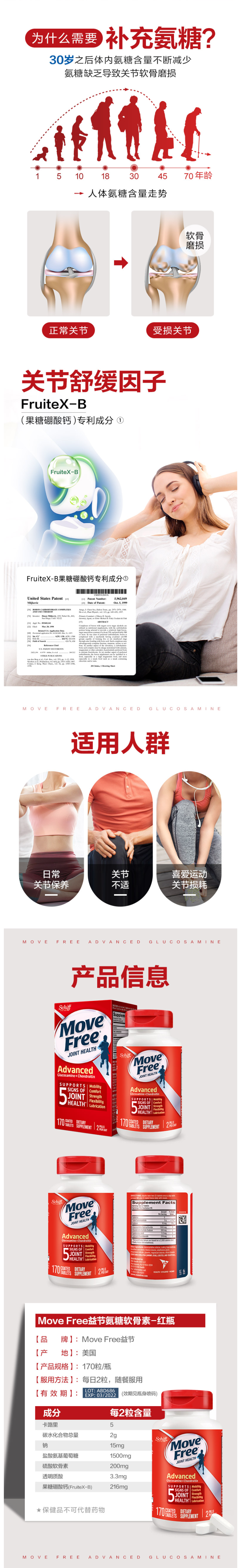 Move Free维骨力,是美国关节保健品市场上的第二大品牌,母品牌Schiff有近80年历史。Move Free最大的特点,是针对骨关节保健盲区“软骨”进行营养补充,核心营养素是“氨基葡萄糖”,也叫氨糖,美国有专门的医疗机构论证过氨糖的有效性。