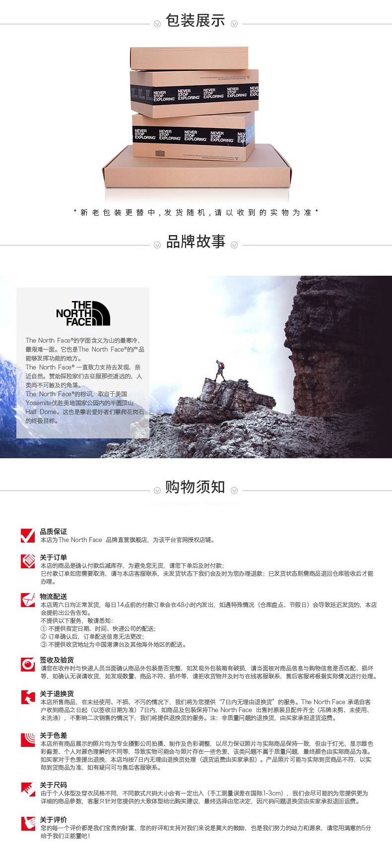 The North Face北面,美国著名户外品牌,成立于1966年,是美国上市公司VF集团的重要一员,总部位于美国加利福尼亚州一个获得LEED白金级认证的节能环保产业园内,致力于为户外运动员的每一次严酷探险提供专业装备。