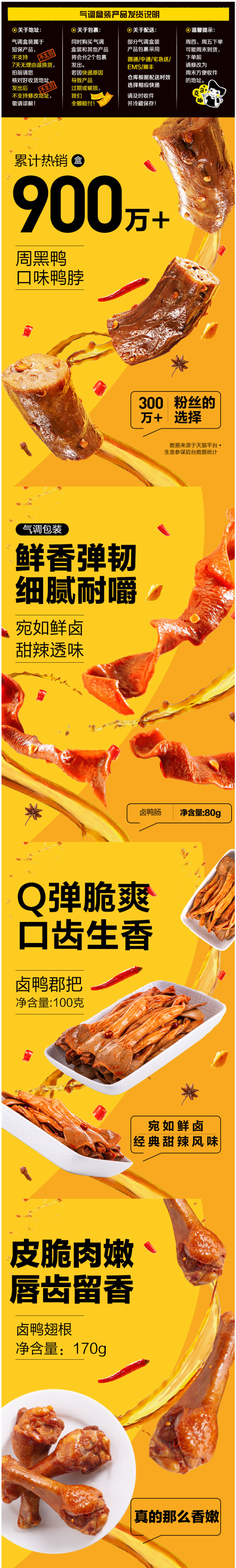 这款周黑鸭卤制品是加入数十种天然香辛料卤制而成,微甜爽辣,入口有点甜,而后越吃越辣,越吃越麻,越吃越香,氮气填充保鲜,全程冷运。