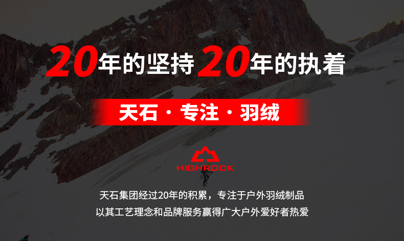 天石的商品参数非常详细,不乱吹,不虚标;天石的定价也很稳,不虚标高价,不同档次对应各价格梯度。天石的问题在于品牌知名度,实体店铺少,很多人还是不知道这牌子。再就是款式专业路线,够专业但不够好看,近年款式有改善。总的说是可以无脑买,不会坑的羽绒品牌。