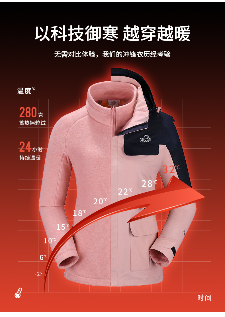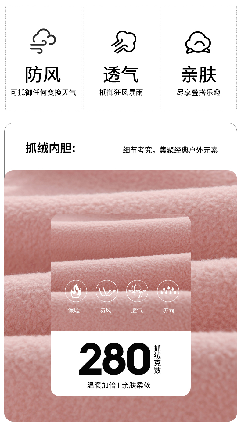 男女多色可选。佟丽娅海报同款,可拆两件套,280g摇粒绒内胆,科技御寒,一衣三穿,升级暴雨级防护,Storm Breath高科技面料,接缝全压胶,防水指数10000,透气指数10600,久穿不闷热,户外出游、登山、不惧恶劣天气。