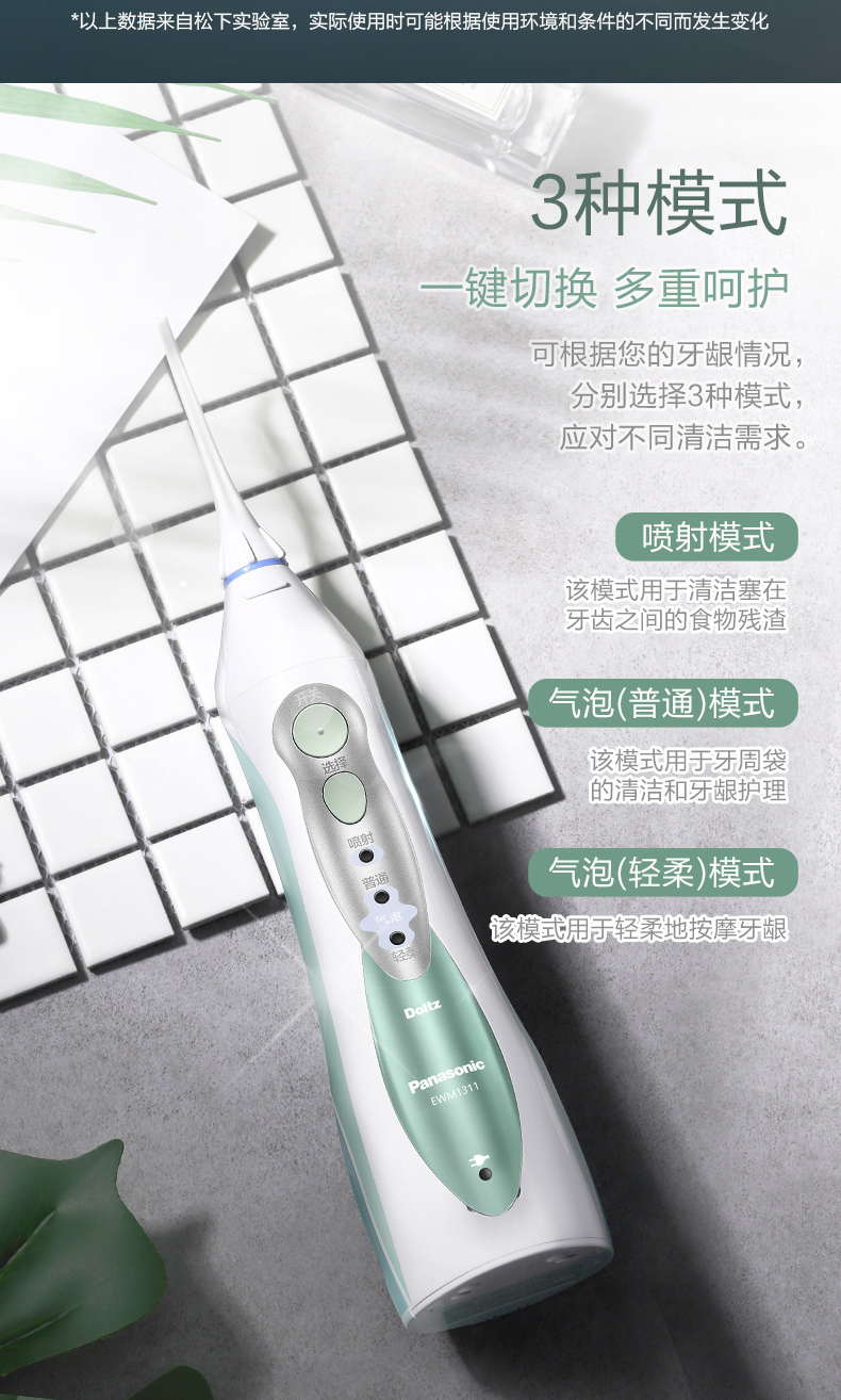 这款松下 EWM1311 便携冲牙器,通过高频脉冲水线,能轻松祛除牙齿和齿间的食物残渣,达到改善口腔环境、清除口腔炎症,去除牙菌斑,预防牙结石,保护口腔健康的目的。高压喷射水流搭配360度旋转喷嘴,能深入口腔盲区,即使牙齿排列不整齐,佩戴牙齿矫正器,牙齿牙龈之间缝隙等顽固部位,也可轻松清洗。