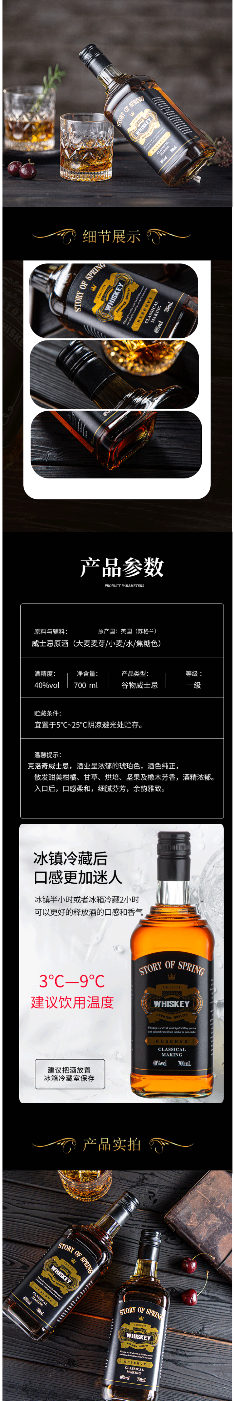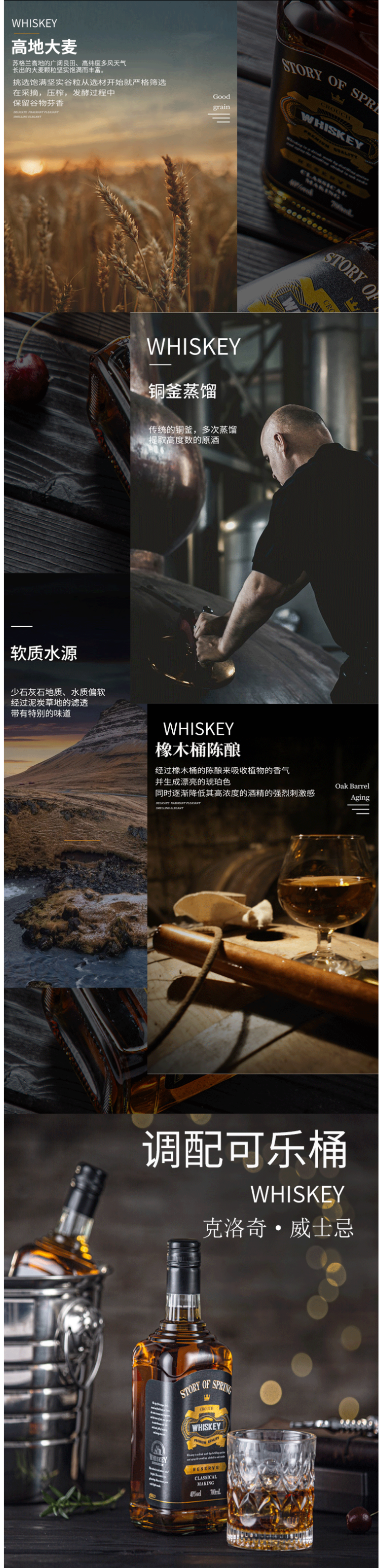 严选苏格兰高地大麦,传统酿制多次蒸馏提取高度原酒,经橡木桶陈酿来吸收植物香气,并形成漂亮琥珀色,酒色纯正,香醇柔滑的口感,凸显格调,散发甜美柑橘、甘草、烘培、坚果及橡木芳香,口感柔和,细腻芬芳,好喝不上头,冰镇后口感更佳。