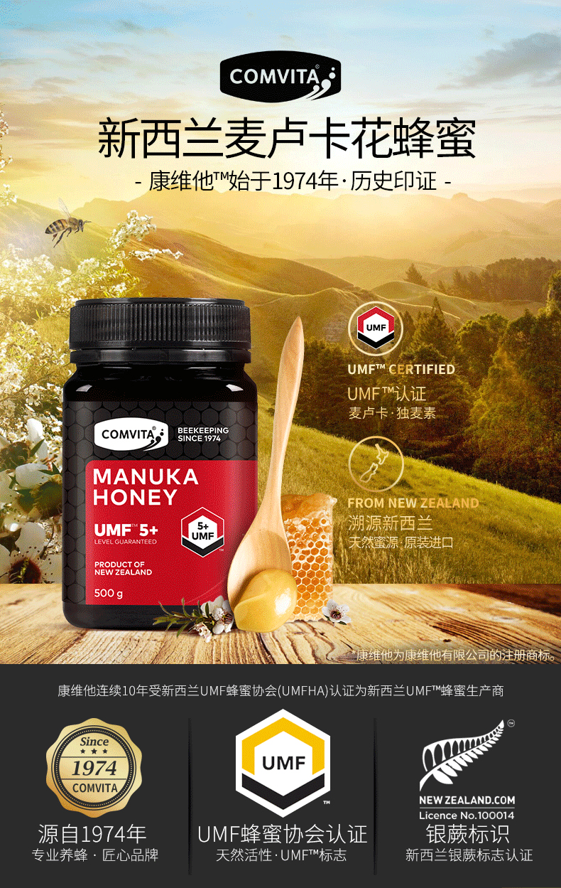 康维他Comvita是来自新西兰的天然产品品牌,旗下的Manuka蜂蜜常见于新西兰本地超市,可以说是国内能买到的靠谱蜂蜜之一。产自新西兰的蜂蜜中含有Manuka麦卢卡树中的独有活性物质,能够辅助治疗和预防,以强健消化系统,护理肌胃及治理伤口功效显著而闻名世界各地。