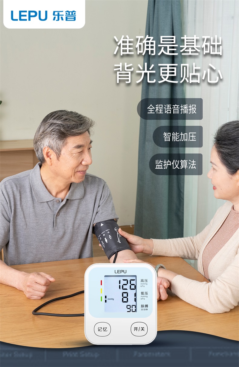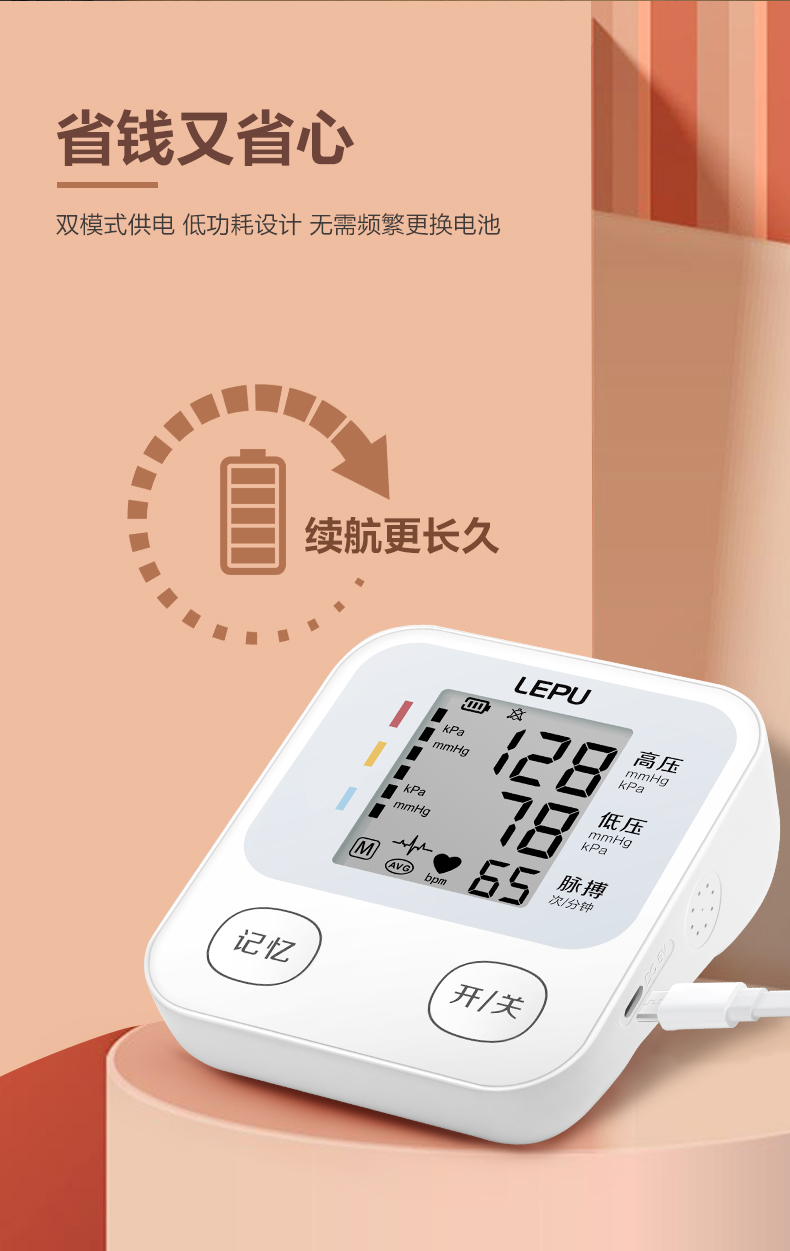 乐普电子血压计,选用优质芯片,测量结果准确稳定。操作上非常简单,气泵自动智能加压,一键测量即可,爸妈上手即会,还有全程语音播报,高清大屏显示测量结果,双供电设计,可以电池也可以插电,使用方便。